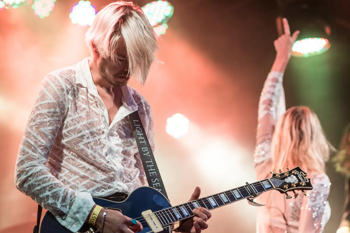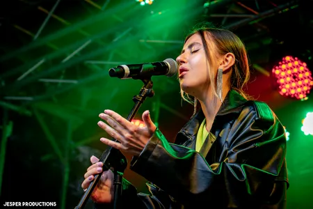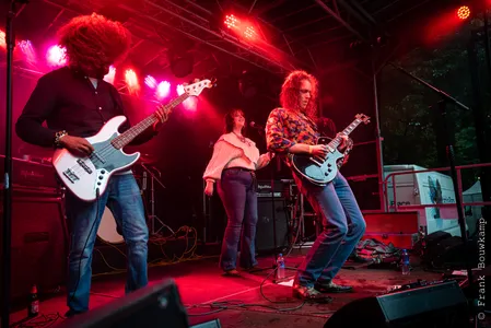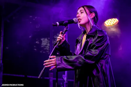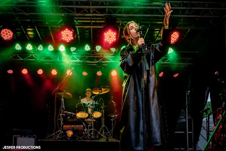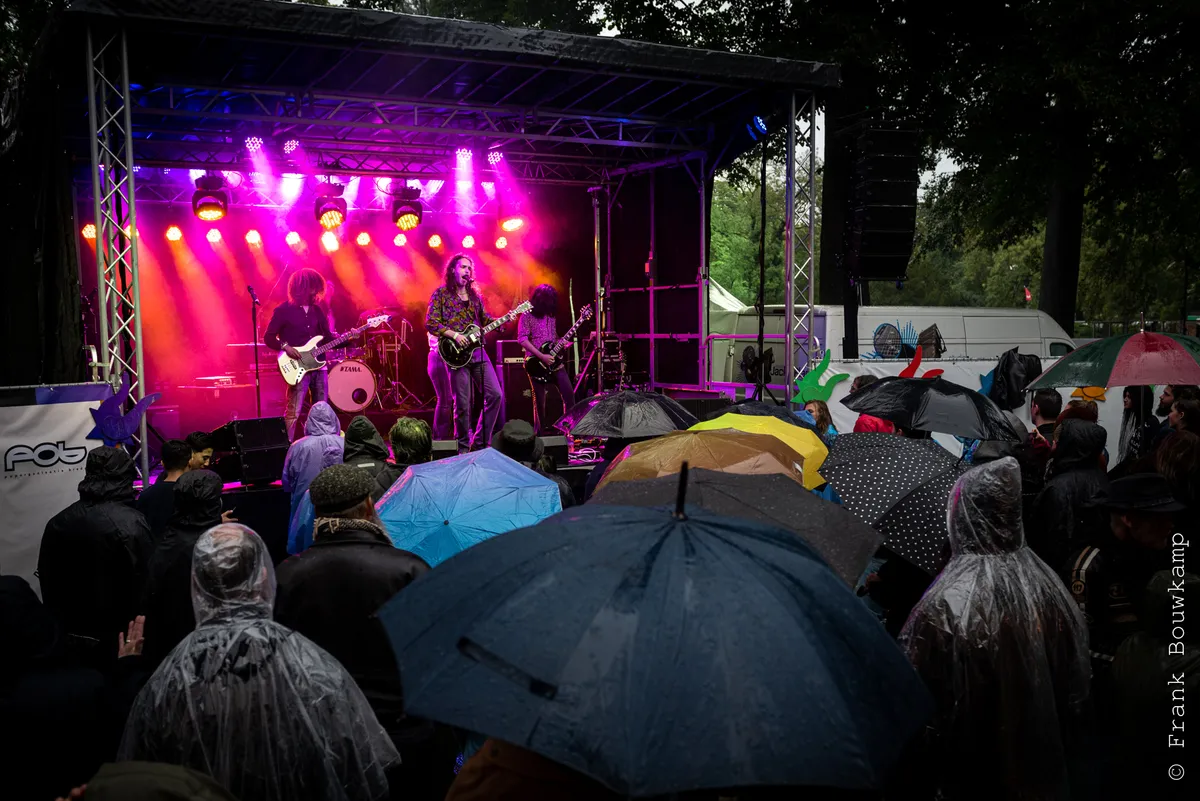 Ook bij het optreden van Light By The Sea regent het nog steeds, maar nu met nog meer wind. Of dat door de wolken komt of door de ventilator op het podium is voor het publiek de vraag. Na het instrumentale intro blijkt vooral zangeres Eszter last te hebben van de mix van haar zang en de zang samples waarover ze zingt. Daardoor klinken haar zangpartijen soms helaas wat vals. En dat maak je in een half uurtje spelen in de buitenlucht niet zo snel goed. Dat is jammer, want Light By The Sea heeft er zin in op het mooiste festival in eigen stad en speelt vol overgave. Haar man, gitarist Davy Knobel, gaat zelfs op z'n knieën om zijn spel kracht bij te zetten. De sfeer van het optreden was goed. Zo blaast een ventilator de haren van Eszter uit haar gezicht en laat de wind de lange slierten aan haar kostuum bewegen. Binnenkort gaat de band op tour voor hun debuutalbum ‘Only Death Makes Icons’. Dat vieren ze onder andere in Hengelo, Dordrecht en Sneek en later nog op andere podia. Ze zullen blij zijn dat de omstandigheden daar beter zullen zijn. (FC)