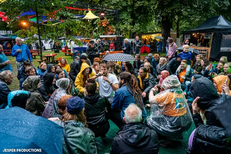 Met natte haren headbangen, terwijl het water van de paraplu’s sijpelt en je sokken inmiddels doorweekte zijn. “Ik sta wel lekker droog hier” zegt Jay Marten waarbij de zangeres achter hem haar middelvinger opsteekt naar het publiek. Hij is niet bang voor hoge noten en wringt zich de kreukels in met zijn gitaar. Hij valt op zijn knieën en er klinken knappe gitaarsolo’s. Vanuit het publiek is na elk nummer een hard gejuich te horen wat Jay Marten & The Early Birds ook zeker verdiend.