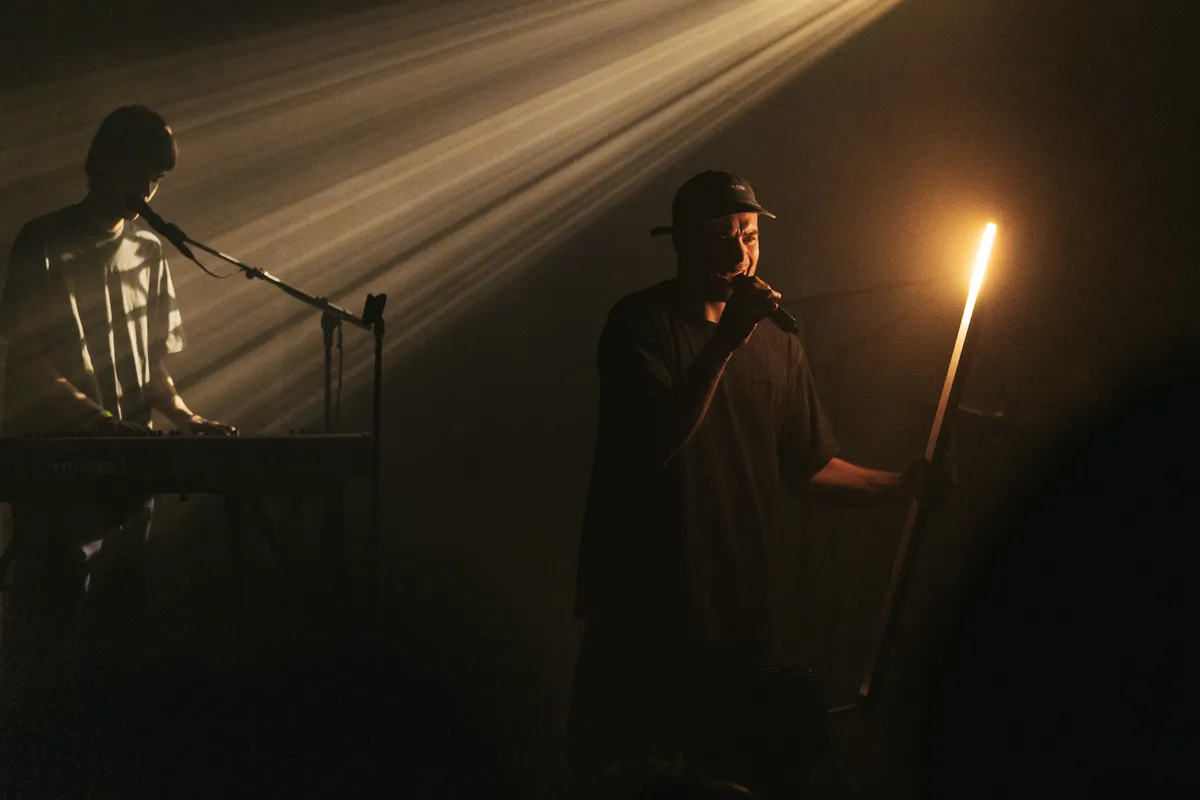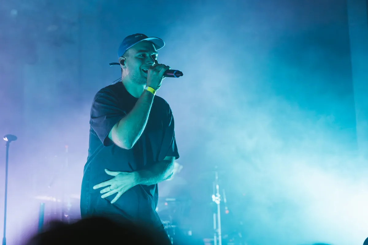 Na deze geslaagde opwarmer en een korte pauze is het de beurt aan Brihang. De toetsenist en drummer komen als eerste het podium op en beginnen aan de openingstrack van het album Droomvoeding. Niet veel later verschijnt Brihang met een “Ça va Maastricht, alles goed?” waarop hij warm wordt onthaald door de uitverkochte Muziekgieterij. Hij vervolgt de zojuist ingezette track ‘Accepteren’, een prachtig nummer over de struggles van een kersverse vader die zijn carrière op een laag pitje zet maar daar ook veel voor terugkrijgt. Het nummer zet gelijk de toon voor de rest van zijn set: persoonlijke poëzie in een hiphopjasje.