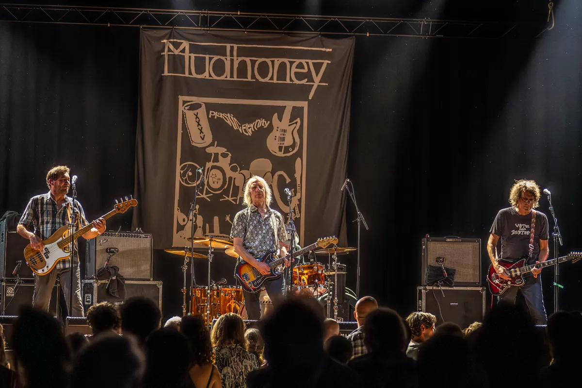 Als er één band is die deze laatste Bruis editie geen introductie behoeft dan is het wel Mudhoney. Althans zeker niet voor de 50-plussers onder ons, die overduidelijk in meerderheid aanwezig zijn tijdens het optreden van deze Amerikaanse band die vaak wordt aangeduid als één van de wegbereiders van de grunge. De ironie wil dat veel van de populairste grungebands uit de jaren ’90 letterlijk zijn uitgestorven omdat de zangers vaak op jonge leeftijd het leven lieten, maar de grondleggers (lees: Mudhoney) die onverstoorbaar hun dingen bleven doen in de underground scene, nog altijd actief zijn. Vandaag maken de jonge zestigers voor de eerste keer in 36 jaren hun opwachting in Maastricht om als laatste band in de grote zaal de gordijnen voor Bruis definitief te sluiten. Zanger Mark Arm is door de jaren heen wat grijzer geworden, maar zijn stem heeft nog altijd niet aan kracht ingeboet. Dat geldt eigenlijk voor de hele band die, zonder dat we het in de gaten hebben, toch wel zorgt voor een opwindende energie vooraan het podium. En als je als band al zo lang bestaat kun je putten uit een aantal klassiekers die vanavond in Maastricht allen de revue passeren: ‘Sweet Young Thing (Ain’t Sweet No More)’, ‘Suck You Dry’, ‘You Got It’ en ‘Touch Me I’m Sick’. Bij het horen van deze nummers snappen we gelijk waar Nirvana destijds de mosterd vandaan heeft gehaald: overstuurde gitaren, gemene fuzz gitaarakkoorden en hypnotiserende gitaarriffs. “One of the perks of being in a band is you get socks” zegt Mark na afloop van het optreden, tilt zijn broekspijpen omhoog en laat de witte sokken van de Muziekgieterij zien. Een bruisend optreden van een veteranenformatie die het spel nog altijd goed weet te spelen en muzikaal niks aan kwaliteit heeft verloren. Hoewel de typische ‘schijt aan de wereld houding’ – wat de grungemuziek zo kenmerkte – nauwelijks nog zichtbaar is bij de heren. Helaas heeft het Bruis festival vandaag wel zijn laatste wedstrijd gespeeld. Mudhoney zorgt er in ieder geval voor dat de mensen van de organisatie met opgeheven hoofd het veld kunnen verlaten.