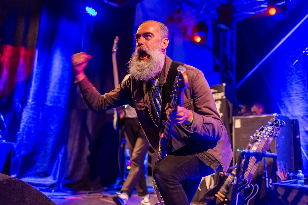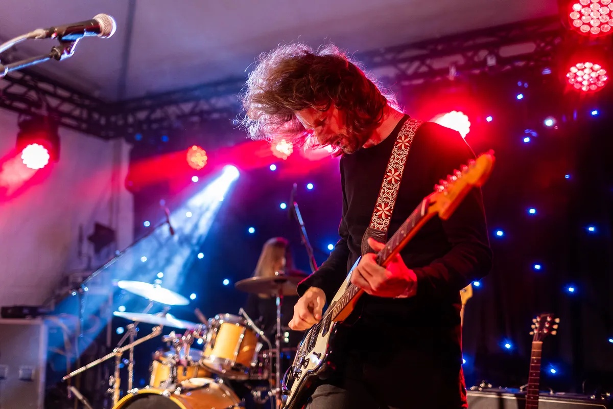 Modder, de instrumentale band uit Gent, brengt een stevige mix van sludge, doom en stonermetal naar Bunkerpop. Vol enthousiasme stapt de band vanavond het podium op en bassist Maurice van der Es trekt direct de aandacht door zonder microfoon een tekst te roepen naar het publiek: een poëtische opening die we niet hadden verwacht. Geen tijd om bij te komen, want met ‘Belly Ache’ knalt de set er meteen in. Zompige riffs sleuren je mee de diepte in, alsof je vastgezogen wordt in een muzikaal moeras. De band versterkt hun donkere sound met industriële soundscapes en subtiele synths, die soms zo onopvallend zijn dat je ze nauwelijks merkt, om dan ineens op de voorgrond te treden en de nummers zelfs dansbaar te maken. Een van de hoogtepunten van de set is ‘Feral Summer’. Het is muziek die je blijft intrigeren; er komen steeds nieuwe elementen naar boven. Soms klinkt het als postmetal, dan weer hoor je duidelijke grunge-invloeden. Deze gelaagde, complexe sound wordt vooral gedragen door drummer Gregory Simons en bassist Maurice van der Es, die met hun zware baslijnen deze muzikale diepgang lijken te dragen. Van der Es, met zijn markante baard, staat centraal op het podium en schreeuwt af en toe naar het publiek, dat volledig wordt meegesleept door de zware klanken. Een sterke afsluiter van deze eerste dag Bunkerpop. (AW)