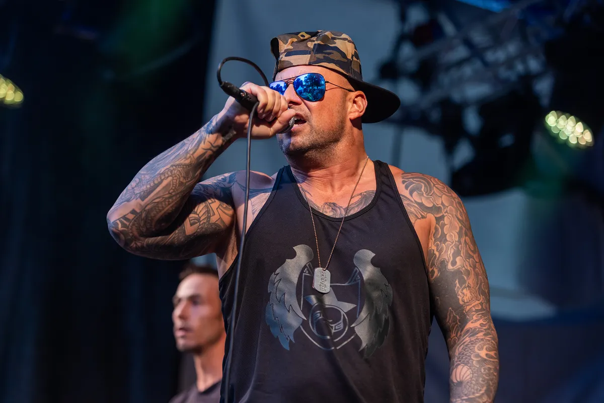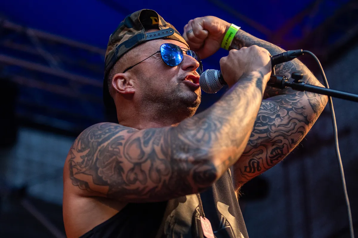 Als je de Limburgse muziekscene een beetje volgt, is de kans groot dat je Ammo al eens voorbij hebt zien komen. Ook wij hebben deze zeskoppige rapcore/rapmetalband uit het zuiden eerder gezien, maar toen waren we niet echt onder de indruk. Vandaag krijgen ze een nieuwe kans om ons te overtuigen. Nog voordat de band begint, spotten we één van de frontmannen op het podium. Met zijn pet achterstevoren, tanktop en grote spiegelende zonnebril oogt hij zelfverzekerd, misschien zelfs té zelfverzekerd, maar we zijn hier niet voor de mode – het draait om de muziek. De set bevat een mix van oudere tracks en nieuw werk, waaronder het live-debuut van ‘Done and Gone’, gevolgd door het energieke ‘Picture Perfect’ dat opent met een sterke riff. Soms werkt de dynamiek tussen de twee rappers prima, maar bij andere nummers lijkt de samenwerking tussen de rappers en de andere muzikanten geforceerd en vragen we ons af of twee frontmannen wel echt nodig zijn. Een cover van Biohazard’s ‘Punishment’ voelt overbodig en haalt de flow eruit. Heeft Ammo ons deze keer overtuigd? Nog niet helemaal, maar we zien zeker groei en hopelijk bouwen ze hierop voort in de toekomst. (AW)