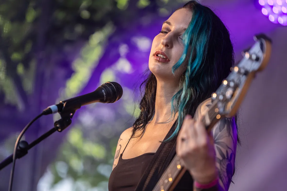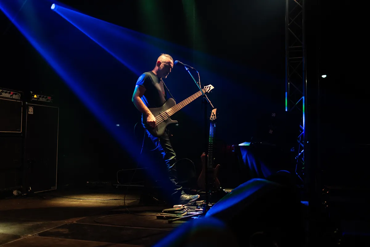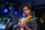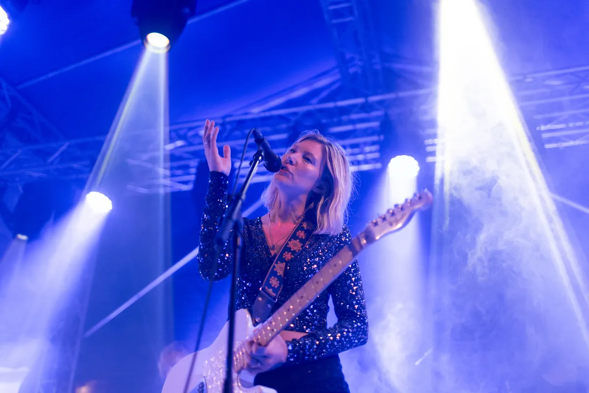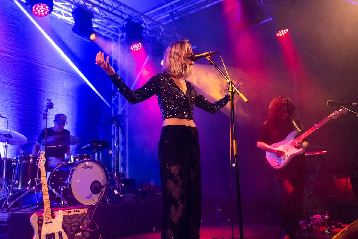 Na al het stevigere, ruigere werk tapt Bunkerpop uit een heel ander vaatje en wordt de line-up vervolgd met “herfstmuziek” als rustpunt van de avond, in de vorm van de Nederlandse band Habitants. De band werd opgericht door The Gathering-gitarist René Rutten. Hun mix van alternatieve rock en triprock wordt gekenmerkt door een etherisch, sfeervol en dromerig jaren 80-geluid. Fluisterend en met vloeiende uithalen nemen zangeres Anne van den Hoogen (Rosemary & Garlic) je mee naar zowel kwetsbare als krachtige werelden, begeleid door betoverende reverbgitaren. Na het debuutalbum One Self uit 2018 volgde hun tweede album Alma in maart, geproduceerd door Attie Blauw. Hiermee durft de band buiten de gebaande paden te treden en een meer experimenteel geluid te verkennen dat doet denken aan de 90's-triprock van Portishead of Massive Attack. Hoewel je door de totale beleving van de zangeres met vloeiende uithalen en het stuwen van de toms ondergedompeld wordt in de dystopie van de toekomst, is Anne's Engelse uitspraak niet heel duidelijk verstaanbaar, waardoor de schoonheid van de teksten helaas deels verloren lijkt te gaan. Hoewel de The Gathering-fans hun hart hebben kunnen ophalen, voelt het repertoire voor ons vandaag wat te veel van hetzelfde, wat niet wegneemt dat het een heerlijk melancholisch wegdroom-moment oplevert tussen al het schuren en scheuren. (MK)