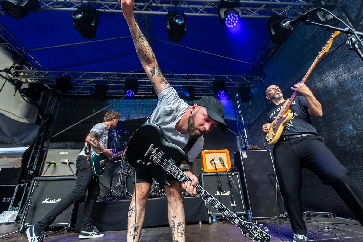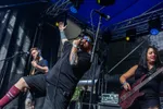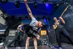 De afsluiter van het festival is dit Franse trio. Een gevestigde naam in de underground van de art-rock en dat hebben grote bands als Gojira en Soen ook opgemerkt, want zij namen LizZard mee op tournee. Het nieuwe album komt eraan en we krijgen vandaag dan ook een voorproefje van wat ons te wachten staat. Helaas hebben best wat mensen besloten om eerder naar huis te gaan, waardoor het vooraan niet meer heel druk is. Dit lijkt de band niks uit te maken en de interactie met het publiek wordt meteen opgezocht en met succes, want vooraan wordt er goed meegedanst en zien we zelfs de laatste moshpit van het weekend. Drumster Katy Elwell (beste kapsel van het weekend) zorgt voor het ritme, dat wordt aangevuld met de stevige baslijnen van William Knox. Zanger en gitarist Matthieu Ricou is het boegbeeld van de band en met zijn zuivere stem en gitaarspel zorgt hij voor de prog-sound die de band zijn eigen smoel geeft. Gestart wordt met het stevige ‘Blowdown’, waarbij we even in een Gojira vibe terecht komen. ‘Black Sheep’ geeft ons een inkijkje in het nieuwe album, waarbij we stevigere riffs mogen verwachten. Inmiddels hebben de weergoden besloten om ons wat verkoeling te brengen, na een snikhete dag. Toepasselijk is daarbij het nummer ‘Tear Down The Sky’, waarbij de regen in intensiteit toeneemt. Het slotstuk van het festival is ‘Singularity’. Nog een laatste vette riff en Bunkerpop krijgt een mooi einde. De band zegt "au revoir" en dan valt de stilte in. (BH)
