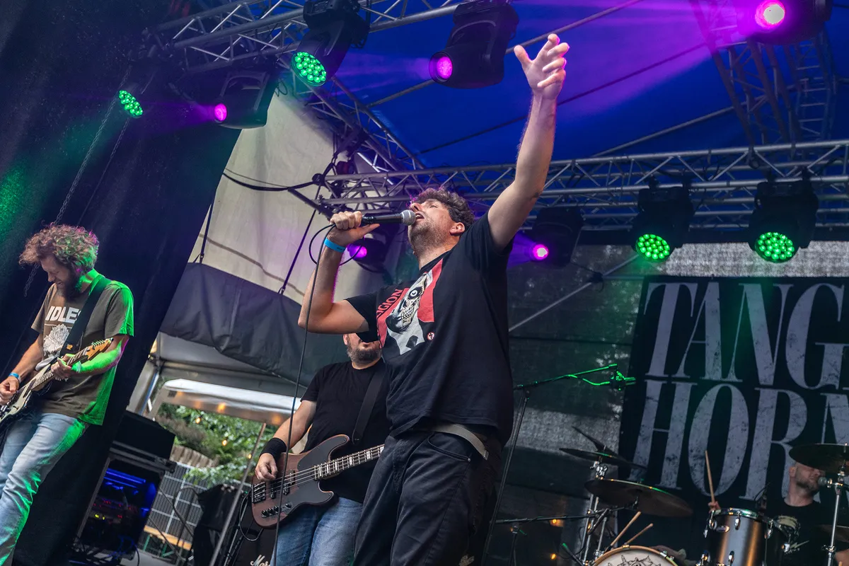 Deze Belgen mochten reeds mee op tour met grote bands als Baroness, Clutch en Red Fang en speelden ook al op grotere festivals als Alcatraz en Roadburn. Het is no-nonsense stonerrock met een dikke klodder 90’s saus. Zanger Tim van de Plas klinkt als Gavin Rossdale in zijn beste jaren. Hun tweede album Lighter, met daarop het geweldige nummer ‘April Fire’ wordt goed ontvangen en zal ook de doorbraak in België inluiden. Mooi dat deze band, die op het punt van doorbreken staat, vandaag te bewonderen is in Landgraaf. Er wordt dan ook meteen gestart met het eerdergenoemde nummer. Vooraan is het best druk en dat blijft ook zo gedurende het gehele optreden. Dat komt mede door de sympathieke interactie en de energie die de band in het optreden legt. Elk nummer wordt met volle overgave gespeeld. De energie komt tot volle uitbarsting bij ‘Tick’, dat zo maar een Nirvana nummer had kunnen zijn. Als je je ogen sluit, dan is het net alsof je in een tijdmachine terug geslingerd bent naar de hoogtijdagen van de grunge-periode. Tenslotte wordt het glas nog geheven bij ‘Pissing In The Wind’ en wij heffen met alle plezier het glas mee. Op een wederzien en een dikke ‘merci’ voor een prima optreden. (BH)