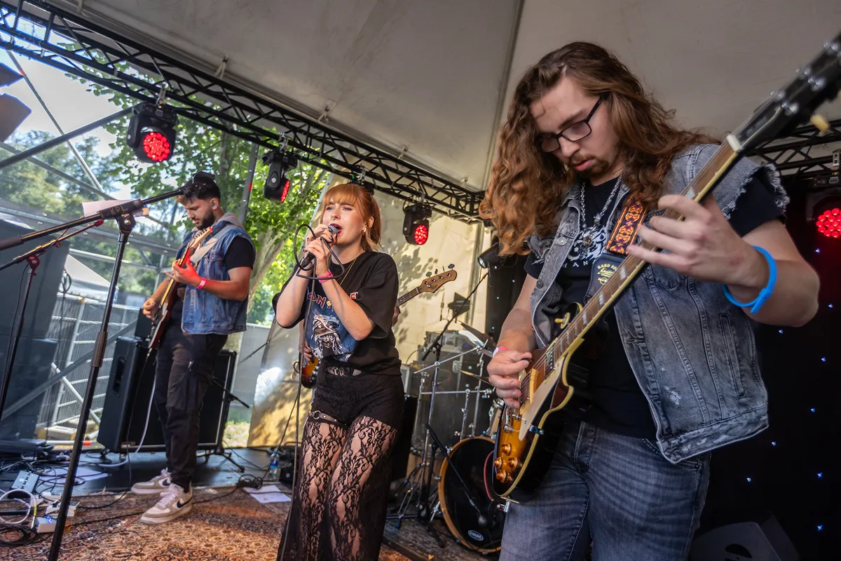Phoenix Ashes, een band die al eerder indruk maakte in de Oefenbunker, speelt vandaag op de mainstage van Bunkerpop, waar het publiek zich verzamelt aan de rechterkant van het podium, waar er schaduw is. De zon brandt tenslotte flink vandaag. Dat weerhoudt de band er echter niet van om met volle energie hun set te spelen. Afgetrapt wordt er vandaag met de meest recente single ‘Defiance’, een knaller van een song waarmee de toon direct gezet is. De bandleden, vooral bassiste Nynke Hudson, bewegen en springen uitbundig, wat soms zelfs tot kleine botsingen leidt. Het podium lijkt haast te klein voor de energie die ze uitstralen. Phoenix Ashes laat vandaag zien hoe afwisselend hun geluid is: soms horen we hardcore, dan een vleugje metalcore en dan klinkt de muziek weer zwaar en log. Dit houdt de set boeiend, ook al kampt Phoenix Ashes vandaag regelmatig met wat technische problemen, wat vooral opvalt tijdens ‘Oceans’, de single die de band eerder dit jaar uitbracht. Jammer, want hierdoor komt de mooie samenzang in dit nummer niet goed tot zijn recht en ook later in de set doen de technische issues afbreuk aan de intensiteit van de muziek. Tijdens het laatste nummer, ‘Sheep Amongst Wolves’, komt zanger Eelko Lommers het publiek in en schreeuwt hij zijn teksten van dichtbij op ons af. Het publiek reageert enthousiast en laat daarmee zien dat de technische problemen allang vergeven en vergeten zijn. (AW)