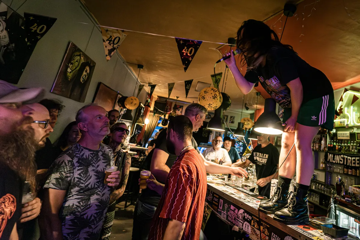 Sommige dingen veranderen nooit: een moshpit in een ruimte waar er geen plek voor is, artiesten die op de bar klimmen en zelfs de zware kater en tinnitus the day after: sinds jaar en dag zijn dit de kenmerken van een avond in Café Bluff. Vaste gast Harold Coenen legt uit waarom hij al jarenlang naar Bluff gaat. “Bluff is gewoon een plek waar je jezelf kan zijn. Iedereen wordt geaccepteerd en dat is het mooie van dit café.” Uitbater Marcel Franssen, die sinds 2007 in de kroeg zit, straalt zondag van blijdschap. Hij heeft zin in het feestje dat hij zelf heeft opgezet. En een feest is het!