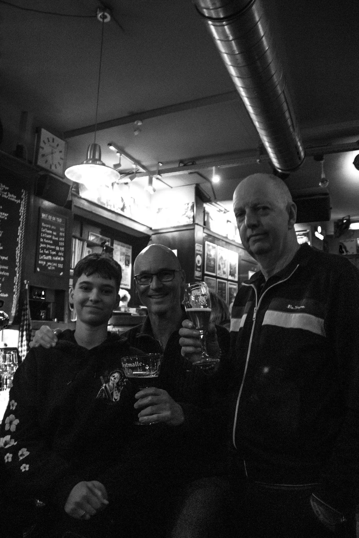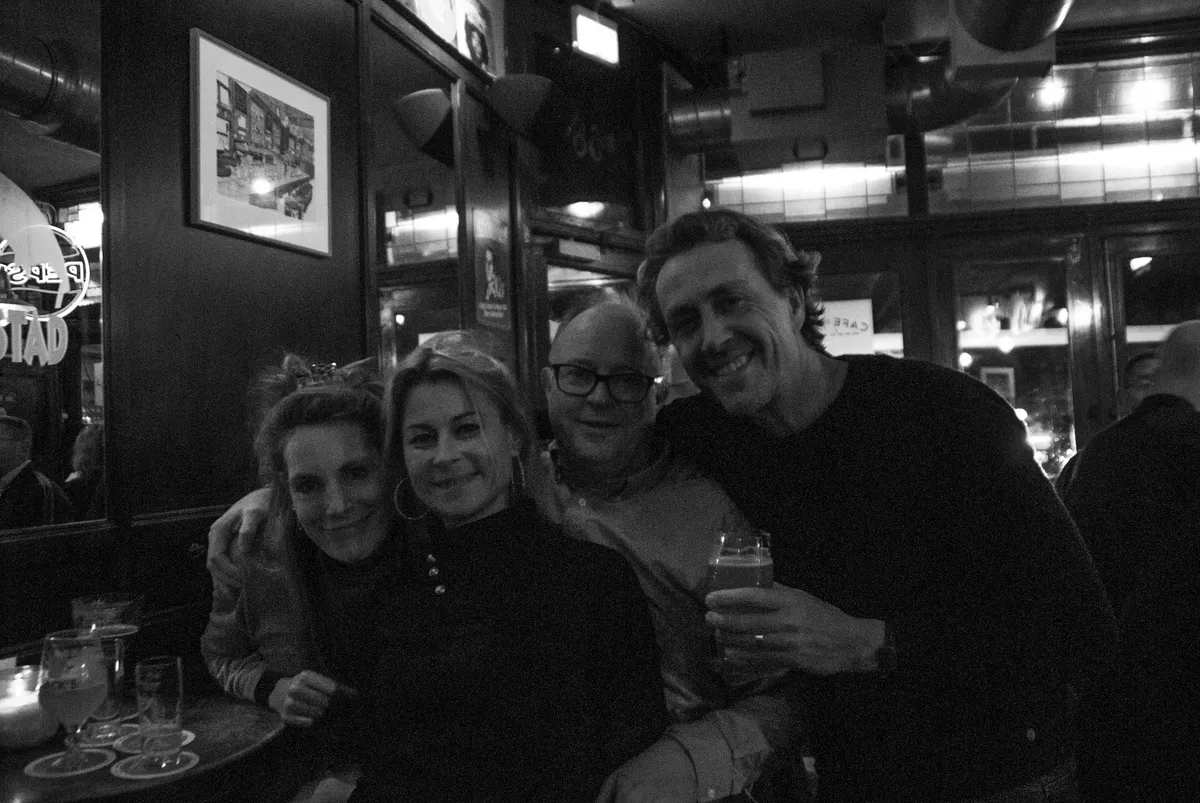 “Je weet dat je hier altijd iemand treft die je kent”, vertelt stamgast Edwin. Hij komt hier al jaren voor de muziek, de mensen en de vertrouwde sfeer. “Iedere vrijdag om 17 uur zit het hier vol met gezichten die je kent van vroeger, al hebben ze nu iets meer rimpels”, zegt hij. Een andere stamgast uit de vaste vriendengroep laat vol trots een groepsapp zien: ‘Vrijmibo’, heet het, met het logo van Café De Stad als groepsafbeelding. “Hier is het ongepolijst, gemoedelijk”, vertelt hij, “ik zou bijna zeggen kneuterig, maar dat woord doet deze plek tekort.” Wat hij zou wensen voor de toekomst van Café De Stad? “Dat ik op mijn 82e hier nog naartoe schuifel en een biertje kom drinken!” De groep lacht uitbundig mee.
