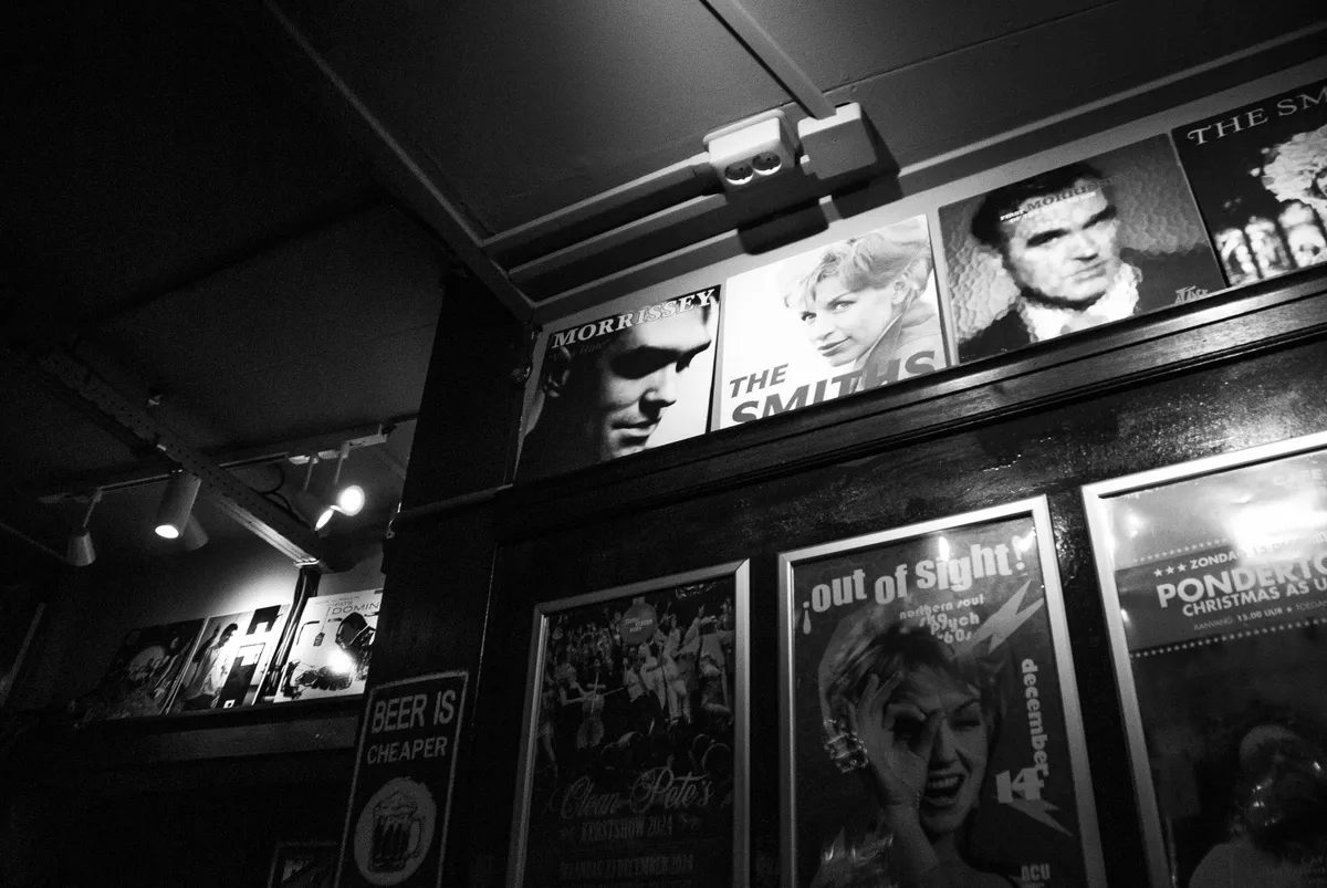 Beer and music bij Café De Stad, zo profileert de kroeg zich online. De plek is stiekem nog veel meer, maar muziek is wel een essentieel onderdeel van het café. Aan alle wanden staan verschillende platen netjes naast elkaar geëxposeerd. “Die veranderen om de zoveel tijd”, vertelt Beatle Hans de Korte. Hij komt al sinds het begin van de kroeg minstens drie keer in de week langs om een lekker biertje te drinken. Vandaag op het menu: een Bolleke van de Koninck. Hans neemt een slok en vertelt: “Vroeger werkte ik bij Tivoli Oudegracht, veel mensen die ik nog ken van toen komen hier ook regelmatig.” Gasten uit de muziekscene dus: muzikanten, technici, producers, komen vaak genieten van de gastvrijheid van De Stad. Bovendien staat Hans ook zelf zo nu en dan achter de draaitafels in het café (zoals aanstaande 8 maart). Naast dj is hij zelf ook platenverzamelaar, net als Egbert. “Het is leuk om te zien wat hier altijd komt te staan, de platen staan vaak op thema”, vertelt hij. “Alleen The Smiths veranderen niet, die blijven staan.” Dat zal ook niet snel veranderen; het is de favoriete band van Egbert: “The Smiths is de beste band van de jaren ‘80, catchy pop met cynische teksten”. We krijgen er een gratis luistertip bij; Strangeways, Here We Come, hun laatste album. “Al zijn ze wel meer een singles-band hoor!”, voegt Egbert lachend toe.