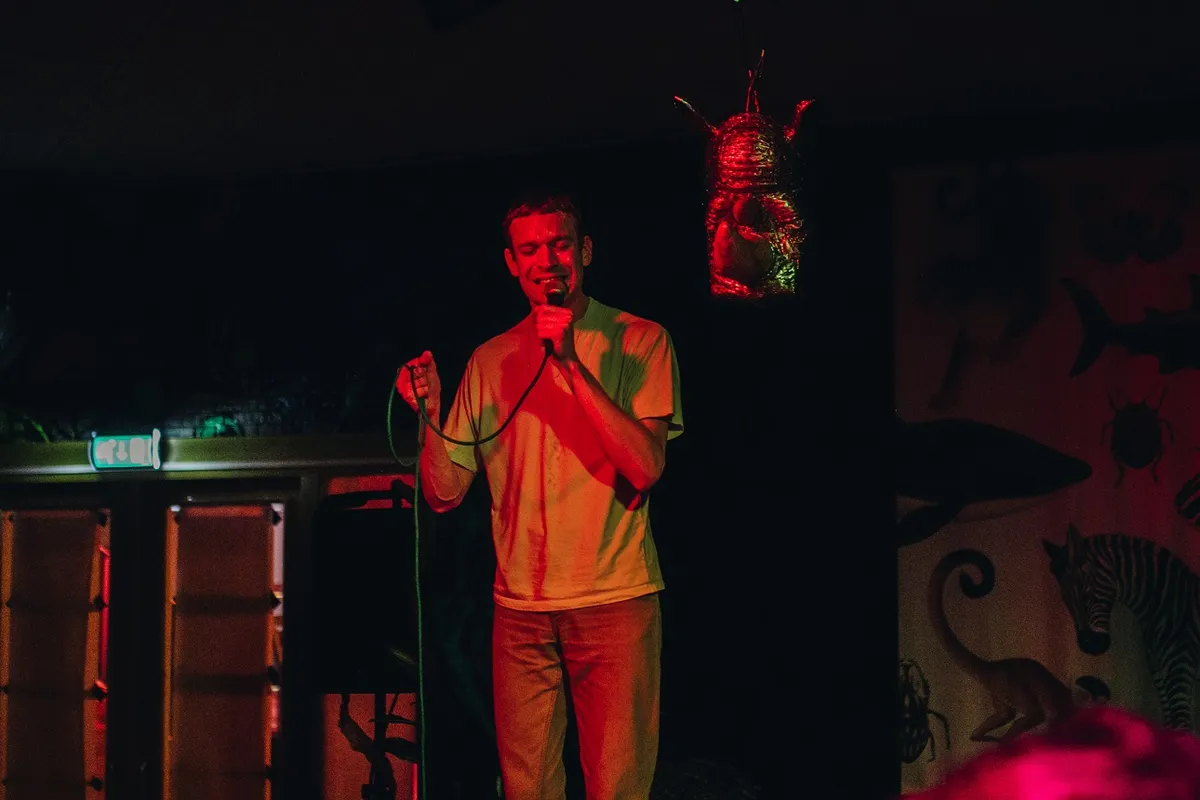 Na een korte pauze begint de act waar menig bezoeker nieuwsgierig naar is. Karel groeit in 2018 uit tot dé Popronde-sensatie en staat in 2019 op festivals als Grasnapolsky, Oerol en Wildeburg. In datzelfde jaar brengt hij ook zijn EP The Work uit, dat vol staat met synthesizer popliedjes. Live speelt hij de muziek af vanaf zijn iPhone en zingt daar vervolgens overheen. Hierdoor legt Karel de focus volledig op zijn hartstochtelijke live-performance. Karel doet alles net iets anders en dat is verhelderend. Muzikaal gezien mag zijn optreden dan niet heel sterk zijn, maar de man is authentiek. Door zijn oprechte dansbewegingen, interactie met het publiek en praatjes leer je Karel beter kennen.