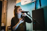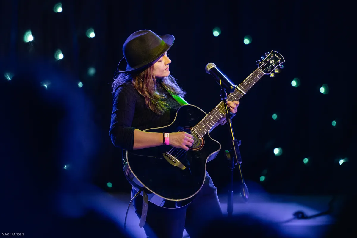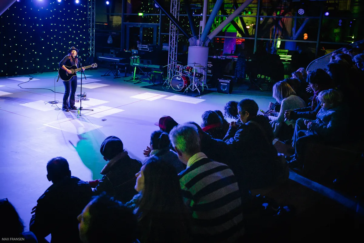 Het blok tussen half zes en ruwweg half zeven in de vandaag geopende Culturele Markthal in De Nieuwe Veste is ingeruimd voor een blok ‘Powervrouwen’, korte optredens in het midden van de grote hal, bij de houten trappen. We pikken enkele slam poetry gedichten mee door Lisette Ma Neza die samen met pianist Bob Clerx er wat bijzonders van maakt. Daarna is het de beurt aan de Bredase singer-songwriter Vaness om haar ‘newgrass’ te brengen, een mix van roots, folk (dark) roots en bluegrass.