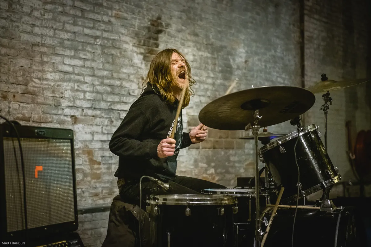 Geen kabaal vanuit Pier 15 dit jaar, maar daar weten de overburen van Brack wel raad mee. Ze nodigden Peuk uit. Ongetwijfeld na het zien van de overrompelende show op Breda Barst in de Spaanse Kraag in 2019. Peuk speelt buiten, in een helverlichte hoek van de oude Backer & Rueb fabriekshal waar nu Brouwerij Bliksem, Ramses Bier en Bredase Bomen er wat origineels van proberen te maken. Het geluid staat loeihard, je kunt al vanaf de Watertoren (en verder) horen dat Peuk furieus opent met ‘Gargamel’…