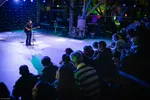“Belgen zijn wat trager, dus het duurt even.” CandleBags laat lang op zich wachten door een technisch probleem met het geluid. Ondertussen maakt zangeres Inge gebruik van deze tijd door over de band te vertellen, terwijl drummer Dirk laat zien hoe goed hij drumstokken kan balanceren op zijn kin. Het wachten wordt beloond: je wordt vanaf het begin meegezogen door de futuristische muziek van CandleBags. Het is moeilijk te omschrijven hoe de muziek klinkt. Het is zwoel en uitdagend. Aan de ene kant doet het erg denken aan elektronische muziek, terwijl het ook de hardheid van rockmuziek heeft. Dat is wat deze band zo bijzonder maakt, het blijft je verrassen. De basiselementen zijn duidelijk; een flinke echo op de stem, een duidelijke beat en gitaarsolo’s.