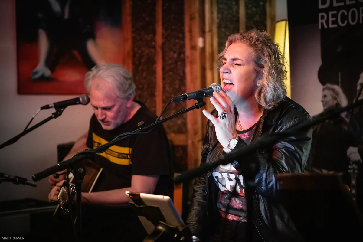 Halverwege de set vertelt zangeres Rosemarie dat ze normaal wel spraakzaam is, maar dat het vanavond niet zo lukt. Het lijkt inderdaad dat ze last heeft van zenuwen en dit haar zang wat beïnvloedt. Pittige nummers zoals ‘Shallow’ en ‘Back to Black’ komen niet helemaal soepel over, evenals in de instrumentale begeleiding van Brian en Ed. Tegen het einde van de set gaat het weer wat soepeler. Er worden wat uitdagendere kunsten verricht met de gitaren, met hier en daar een fout. Ze geven toe dat ze dit voor het eerst doen, dus het publiek heeft er vrede mee dat het niet perfect is. Tijdens de afsluitende cover ‘Rollercoaster’ zingt de hele zaal mee. (MB)