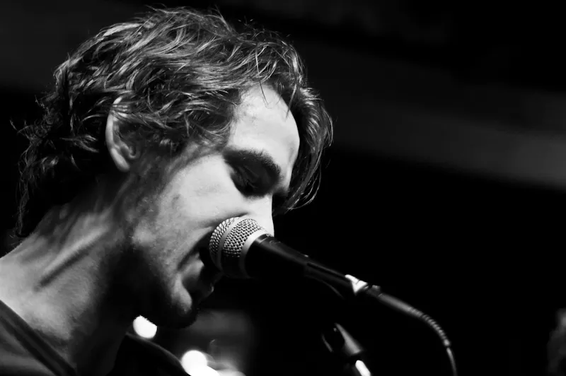 De vierkoppige band Caulfield heeft plaatsgenomen op het drie-vierkante-meter-grote podium van café de Deut. Het is in het begin dan ook even zoeken naar drummer Werner Willemsen, die zich noodlottig in de hoek verscholen heeft achter zijn collega-muzikanten Steven Roeters en Peter Muselaer. Voor Peter is het vandaag een thuiswedstrijd. Dit keer is het niet aan hem om de mensen van drank te voorzien vanachter de bar, maar van een mooie portie basgeluid van af het podium.