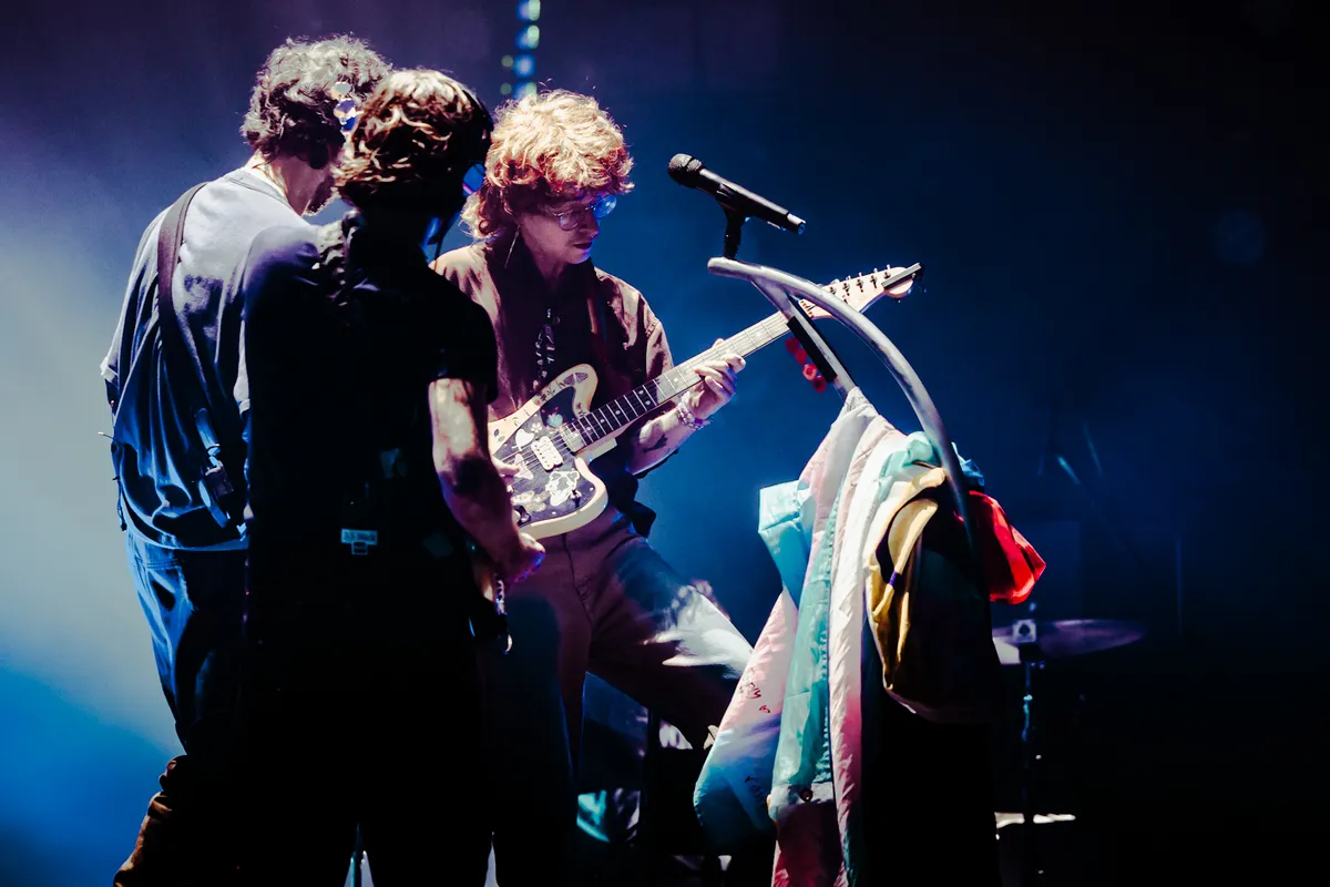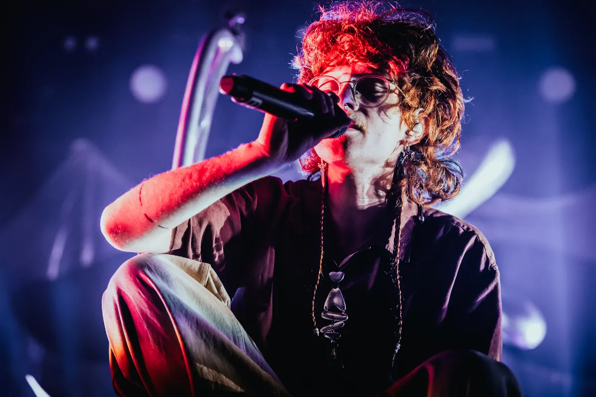 En die komt precies op een minuut na afgesproken settijd het podium op. De band is deze ronde vier man sterk: Skinner met daaromheen nog drie andere muzikanten. En net zoals het album waar Cavetown voor tourt openen ze met de twee nummers die ook de plaat openen. Luid gejoel en geschreeuw als ‘Skip’ wordt ingezet en je zou dan nog kunnen denken dat de Engelsman met een rustig nummer geen nieuwe muzikale koers is gaan varen, maar als dan daarna ‘Cryptid’ komt, hoor je gelijk hoe de indiepop is ingewisseld voor alternatieve pop en rock.