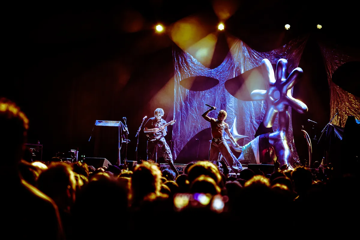 Maar niet voordat supportact Dreamer Isioma mag aftrappen. De Nigeriaans-Amerikaanse muzikant krijgt direct de zaal mee met een geslaagde mengelmoes aan genres zoals hiphop, funk en R&B. Dat komt niet alleen door Isioma zelf; diens gitarist Dante Swan maakt ook veel indruk met rake gitaarsolo’s en funky akkoorden die heel de Main aan het dansen krijgt. Maar er is ook ruimte voor politiek: Isioma maakt van het podium en platform en gebruikt vaak slogans als ‘Free Palestine, free Africa and free the whole world’ tussen de nummers door.