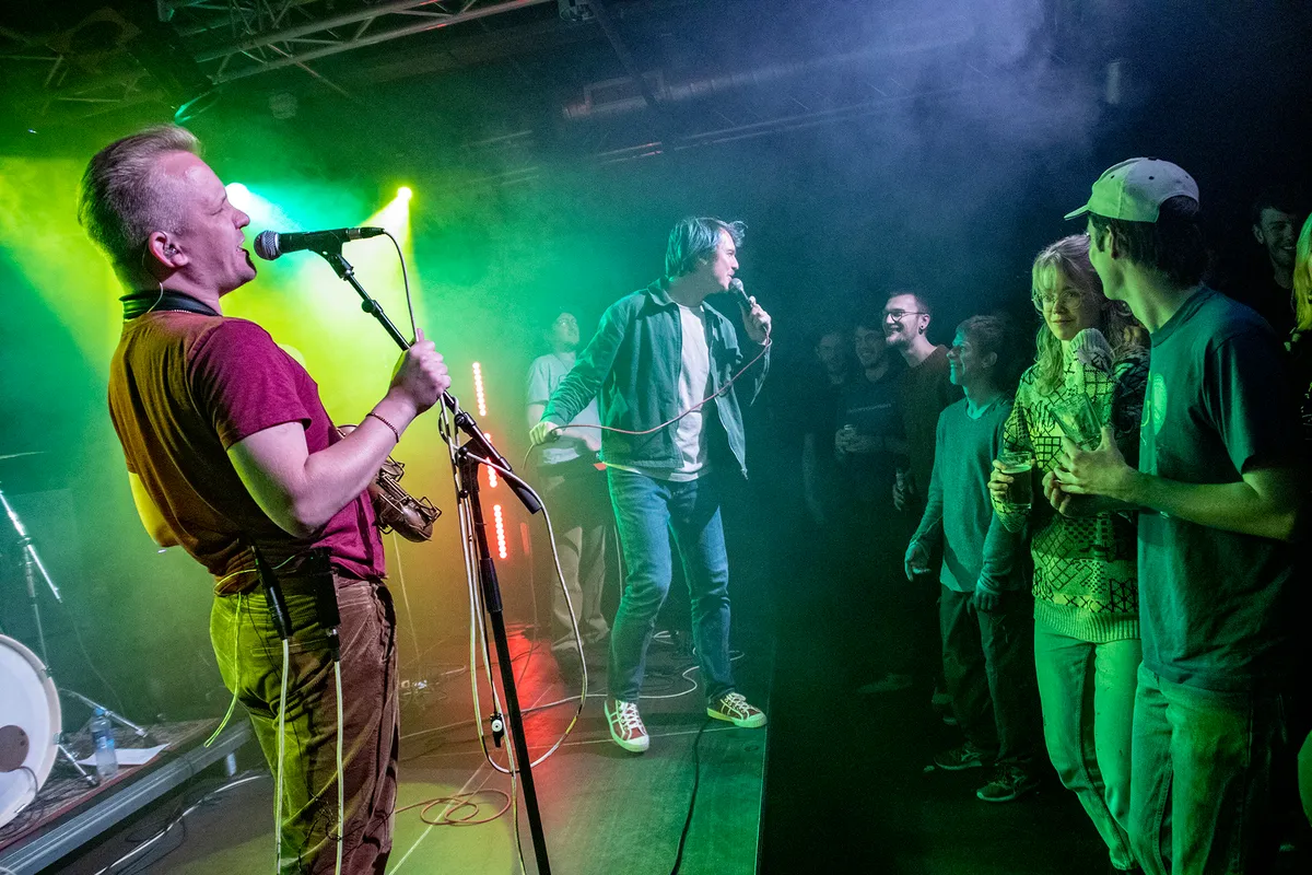 Het is vrijdagavond tegen tienen. Vanavond spelen de Groningse band McScallywag en de Engelse band Faintest Idea in de ORKZ bar, een bar die draaiende wordt gehouden door de bewoners van het oude ziekenhuis zelf. Langs de beschilderde wanden van de gangen van het ORKZ, maken we onze weg naar de bar. Hier lijkt het alsof de tijd heeft stil gestaan, en dan zeker op de goede manier. Bij de ingang van de bar, wordt er om 7 euro aan contanten gevraagd voor entree. Dit gaat rechtstreeks naar de bands en gelukkig voor de moderne mens kan er ook gepind worden aan de bar, om zo toch de bands te kunnen supporten. Een sfeer van ongedwongen vrijheid en kunstzinnige saamhorigheid zorgt ervoor dat we ons gelijk welkom voelen. The ORKZ bar vult zich langzaam met jong en oudgedienden. Laten we beginnen!