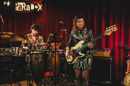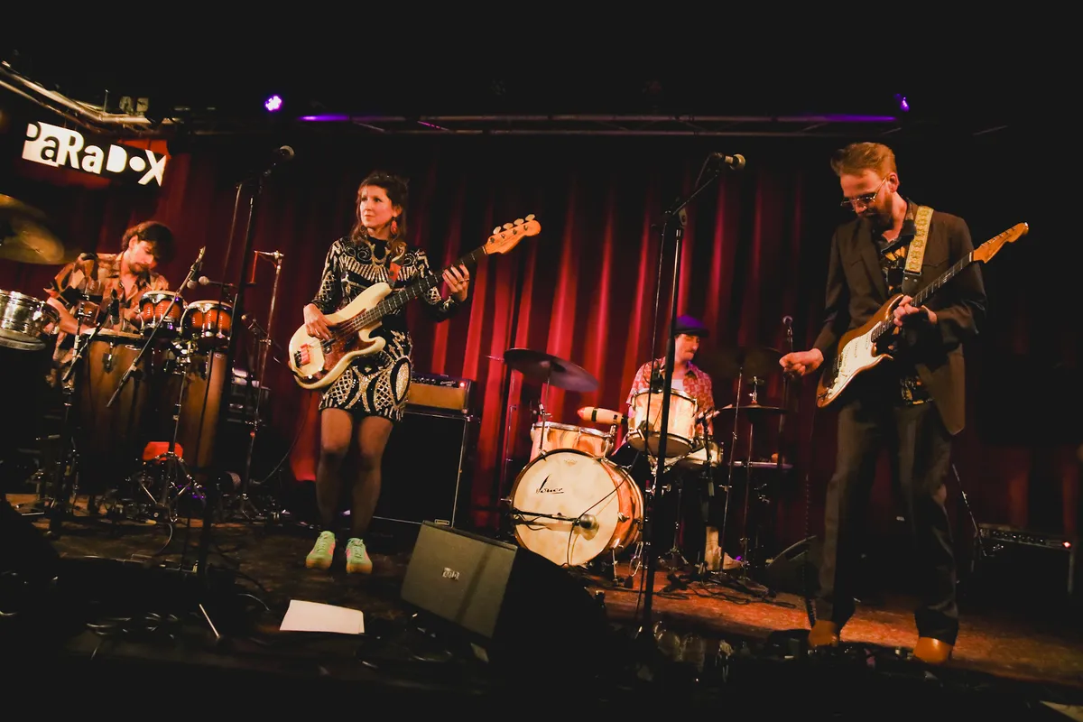 In een uitverkochte Paradox presenteert Chica Chica vanavond hun gelijknamige debuutalbum, het belooft een avond vol instrumentale grooves, percussie en vooral, Cumbia! te worden. Chica Chica is de band van de Tilburgse bassiste Judith Renkema, het project ontstond tijdens de pandemie en kwam voort uit het verlangen om op vakantie te gaan. Samen met haar band toverde ze dat verlangen om in een exotische muzikale creatie. Judith wordt vergezeld door mede Tilburger en gitarist Jeroen Kant, drummer Ties Voskamp en percussionist Luuk Adams.
