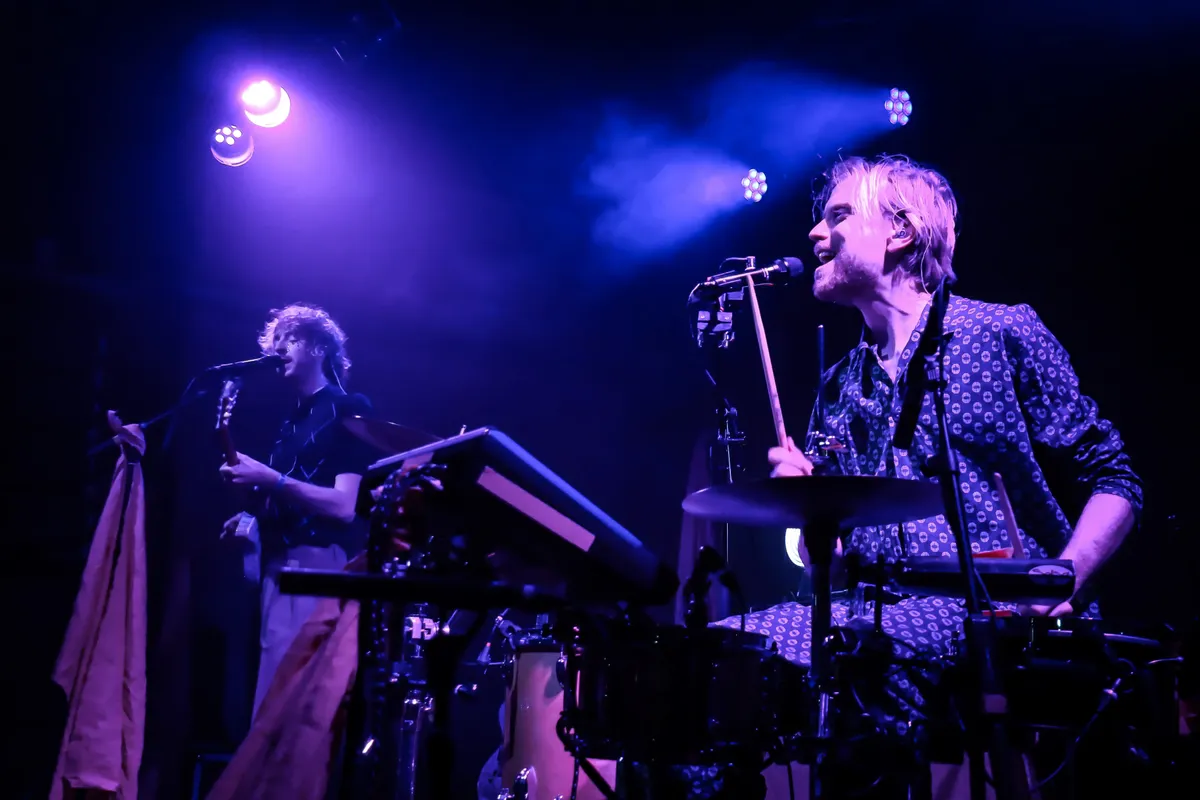 Zonder pauze gaan we door met de hoofdact van vanavond: Ciao Lucifer, bestaande uit Willem Wits en Marnix Dorrestein. De herhalende groovy gitaarriffs van gitarist Dorrestein leiden de eerste song ‘Closer’ in. Een prettig opbouwende opener, maar de heren lijken er nog even in te moeten komen want de vocalen van Dorrestein zijn niet altijd even raak. Tegen het eind van het derde nummer lijkt de spanning van de schouders te vallen en zien we het vrolijke duo opbloeien. Het nummer ‘So Slow’ lijkt op het eerste gezicht een vrolijk indiepopnummer, maar gaat in werkelijkheid over de lange wachttijden bij de GGZ: “Each and every moment getting anxious more and more // So slow, so slow, taking so long”. Het laat zien dat het duo hier niet alleen is om lol te maken, maar ook om licht te schijnen op serieuze onderwerpen. Hoewel plezier nog wel altijd voorop staat bij Ciao Lucifer: zo delen ze bandjes uit aan het publiek die zij op hun beurt weer mogen weggeven aan de beste dansers, horen we hier en daar een kazoo voorbij komen en delen ze bellenblaas uit. Soms voelt het alsof Ciao Lucifer iets te veel hun best doet om het publiek enthousiast te houden, terwijl ze dat ook prima kunnen met alleen hun muziek. Willem Wits is duidelijk de meer ervaren muzikant, op zijn drumskills is weinig aan te merken. Sterker nog: de in pyjama gehulde drummer speelt een mega strakke show en zijn continue glimlach verwarmd de hele zaal. De nummers zijn enorm aanstekelijk, lekker bouncy en blijven makkelijk hangen. Hier en daar horen we ook wat funky disco waarmee ze elk voetje van de halfgevulde Hall of Fame van de grond weten te krijgen. Een veelbelovend duo dat hopelijk nog wat festivals weet mee te pakken, want hun album Good News is perfecte soundtrack voor de zomer.