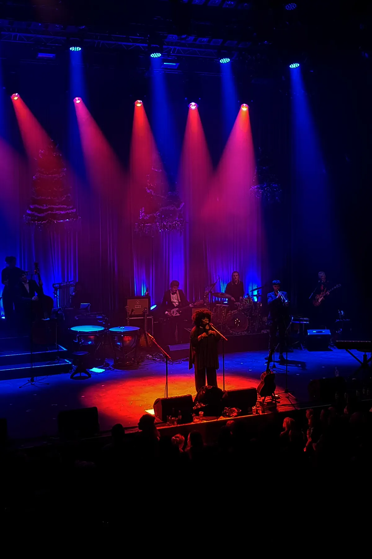 De opening is een verrassend jazzy uitvoering van een kerstklassieker, waarna Loes Wijnhoven met de nodige humor de jongere en oudere bezoekers welkom heet. Toen het duo acht jaar geleden begon met de kerstshows (toen nog in de Kleine Zaal van Doornroosje) hadden ze niet kunnen bevroeden dat het tot dit zou leiden, en ook dat er een matinee zou volgen. De traditionele kerst rock ’n roll mag niet ontbreken in de set en de band - gitarist Lars Kroon (o.a. Toverberg), bassist Danny van Tiggele (o.a. Mister and Mississippi), drummer Fabian Kraal (o.a. Dino Kids) en gitarist Anne Soldaat – trakteren de zaal op een prettig rockende versie van ‘Run Rudolph Run’ van Chuck Berry. Lars horen we later in de show nog terug met het ingetogen ‘Hoor jij ook wat ik hoor’. Ook inmiddels traditie: een kerstverhaal. Aan schrijver Thomas Heerma Van Voss de eer om op een droogkomische wijze zijn eigen belevenissen rondom het kerstdiner voor het voetlicht te brengen.