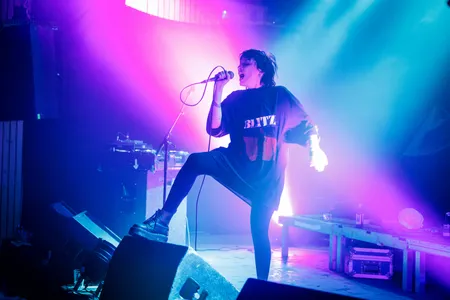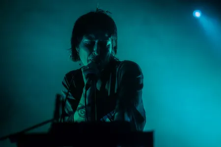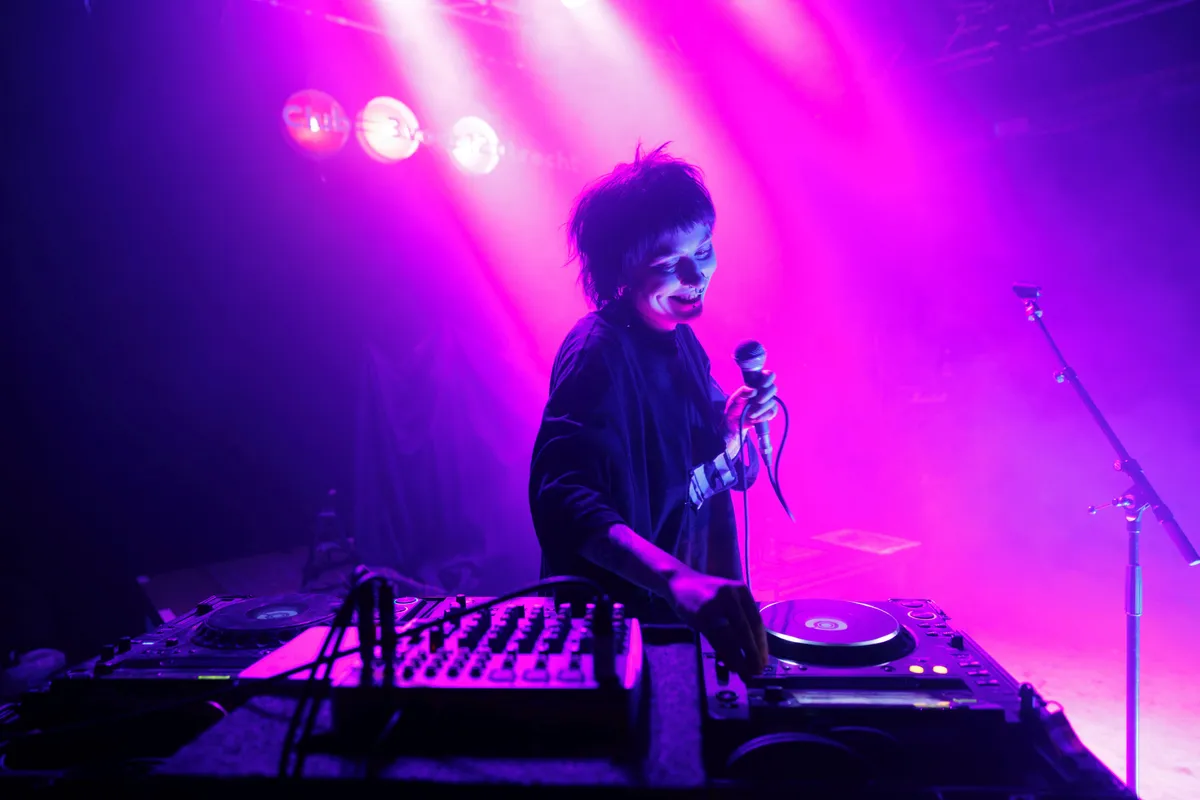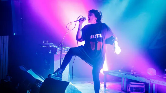 Als laatste op het programma staat de Frans-Nederlandse performancekunstenaar Camy Huot, die net haar nieuwe single Mediocre heeft uitgebracht. Ze schudt het publiek gelijk wakker met haar duistere synthpunk en minimal darkwave tracks. “If you feel uncomfortable, just close your eyes and pretend there is a band behind me”, zegt ze na het eerste nummer. Die band heeft ze overigens totaal niet nodig. Ze danst en springt over het hele podium en na ieder nummer is ze een beetje meer buiten adem. Huots energie is aanstekelijk en door de hypnotiserende beats word je meegezogen in haar wereld. Ze zingt over niet naar buiten durven gaan als vrouw en over haar ex die ze vergelijkt met een dode muis in een wasbak. Het is een formule die ietwat herhalend is, maar wel de hele zaal aan het dansen krijgt. Als ze klaar is met haar laatste nummer, blijft het publiek hoopvol staan. Ze gaat akkoord met een encore; het is een rustiger nummer waarbij ze even kan zitten. Maar de synths en harde drumbeats dreunen weer door de speakers en Huot kan het niet laten om haar laatste beetje energie er toch nog dansend uit te gooien.