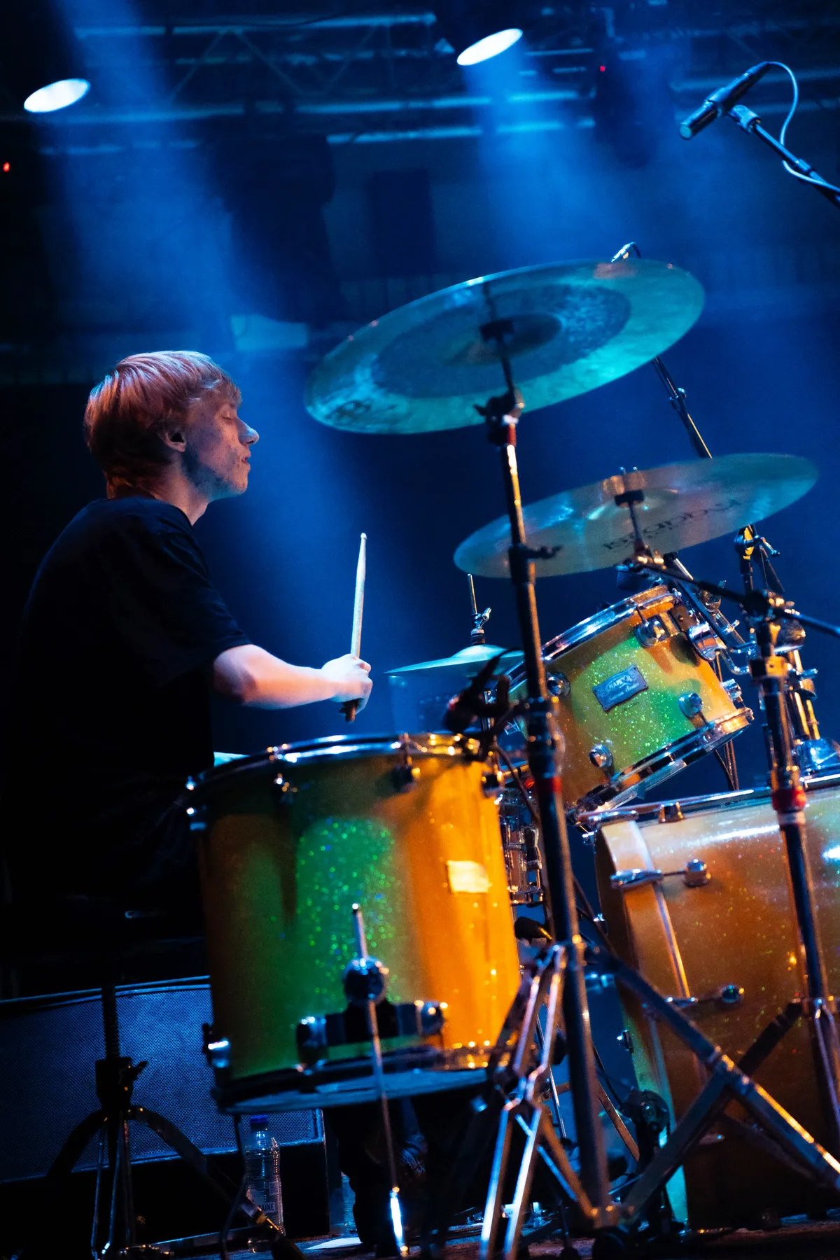 De band heeft gekozen voor een drumcomputer in plaats van een traditionele drummer, iets wat bands die hen waarschijnlijk geïnspireerd hebben ook deden. Die levert een repetitieve, bijna hypnotiserende laag op, maar mist soms de spontane dynamiek van live-drums. Daartegenover staan poëtische teksten en echoënde vocalen die de muziek een menselijke kern meegeven. De bandleden spelen subtiel op elkaar in, waardoor de precisie van de set duidelijk wordt. De visuals worden in realtime getriggerd door toetsenist Bob Leynse, wiens MIDI-signalen de schermen aansturen. Het resultaat is een optreden dat sfeervol en dreigend is, maar tegelijk intiem aanvoelt.