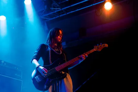 Het optreden komt over als een statement, met ruimte voor speelse details. Dat wordt tastbaar in het fysieke spel van zangeres/gitariste Lena Panahy, die tijdens een climaxmoment energiek in de lucht springt.