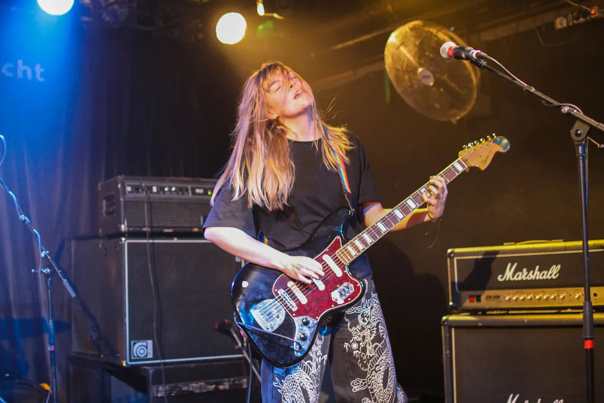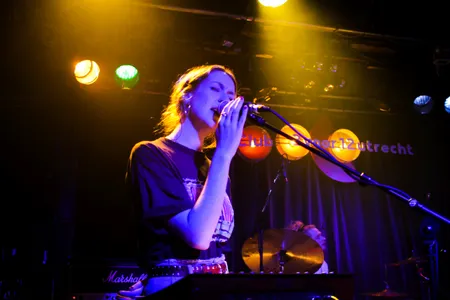 Deze show gaat heet worden, zegt zanger/gitarist Kay Koopmans na enkele nummers. Hij bedoelt daarmee vooral de warmte onder de podiumlampen, maar heeft het wellicht onbedoeld ook over de rest van de show. De intense postpunk zorgt er namelijk voor dat een aantal bezoekers al snel voor een pit zorgt en de hele show door wordt er gedanst en gesprongen. Drummer Lennart van Hulst speelt alsof zijn leven er vanaf hangt. Hij en ‘bassiste’ Nina Lijzenga leggen een kloppend fundament voor liedjes waarop Koopmans met zijn scheurende gitaarspel lekker zijn gang kan gaan. We schrijven bassiste bewust tussen aanhalingstekens, want de bariton gitaar van Lijzenga is iets tussen een gitaar en bas in. In combinatie met de soms fel uitgespuwde teksten van Koopmans krijgen de songs van Marathon zo een dystopisch gevoel.