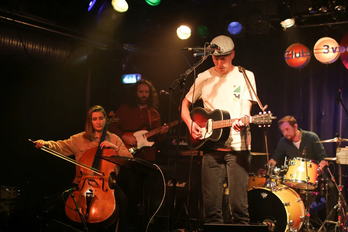 De afgelopen maanden waren druk voor A. Johanson. Begin oktober verscheen zijn debuutalbum Who Are We Fooling, over de relatie tussen mensen en natuur, en speelde hij meer dan vijftien shows tijdens de Popronde. Omdat je tijdens het reizend muziekfestival niet in je eigen stad mag spelen is het fijn voor hem om deze ‘tour’ in Utrecht af te sluiten. Dat doet hij anders dan tot nu toe. Tijdens de eerdere Popronde-shows speelde A. Johanson alleen of samen met een toetsenist/samplestarter. Vanavond staat er echter een vijfkoppige band op het podium - met ook nog gitarist, drummer en cellist - die voor het eerst in deze samenstelling samenspeelt. De orkestrale indiefolkliedjes krijgen daardoor aanzienlijk meer body dan wanneer ze met zijn tweeën gespeeld zouden zijn.