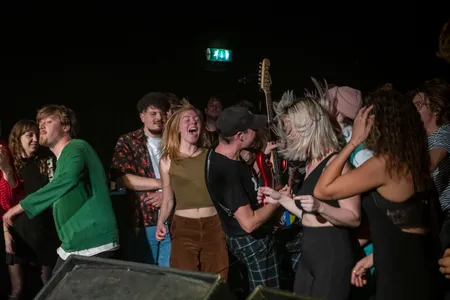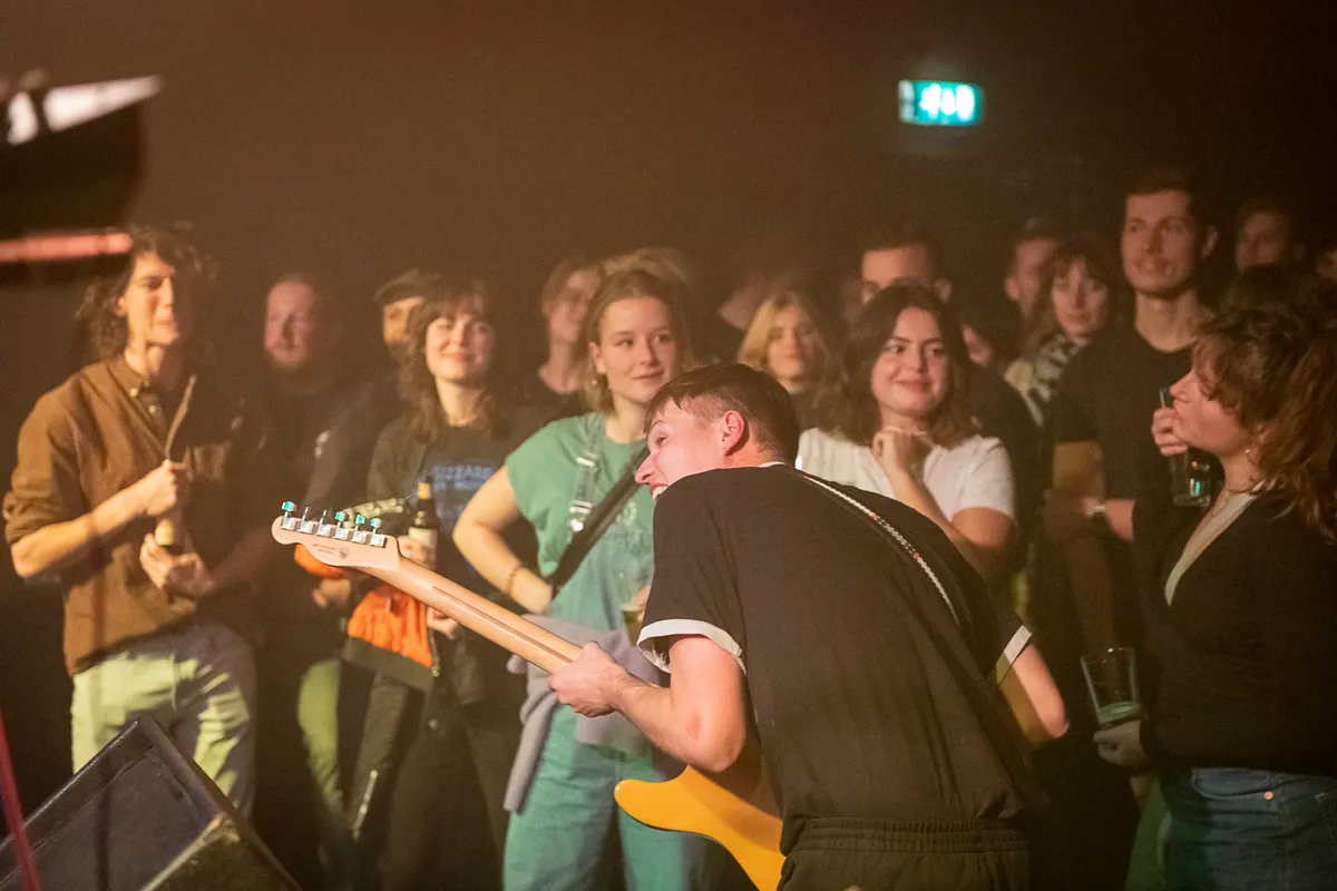 Daar houden de overeenkomsten verder wel op. Waar A. Johanson’s nummers een melancholische ondertoon hebben, zorgen die van Muylike voor een zomers gemoed. Alsof je een weekend met allemaal mooie plannen in gaat. De liedjes hebben een hoge(re) snelheid en Stijn Post’s zang en open gitaarspel, dat soms zelfs een beetje als een hawaii-gitaar klinkt, zorgen voor goede vibes. Omdat de acts op Club 3voor12 Utrecht in principe rond de dertig minuten spelen heeft Post voor vanavond vooral de snelle nummers uit zijn repertoire gekozen. Het zorgt er in ieder geval voor dat verschillende bezoekers lekker gaan dansen. Muylike eindigt zijn set met het super catchy ‘Here We Go Again’, dat ook op het debuutalbum staat dat in maart 2023 verschijnt.