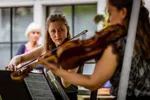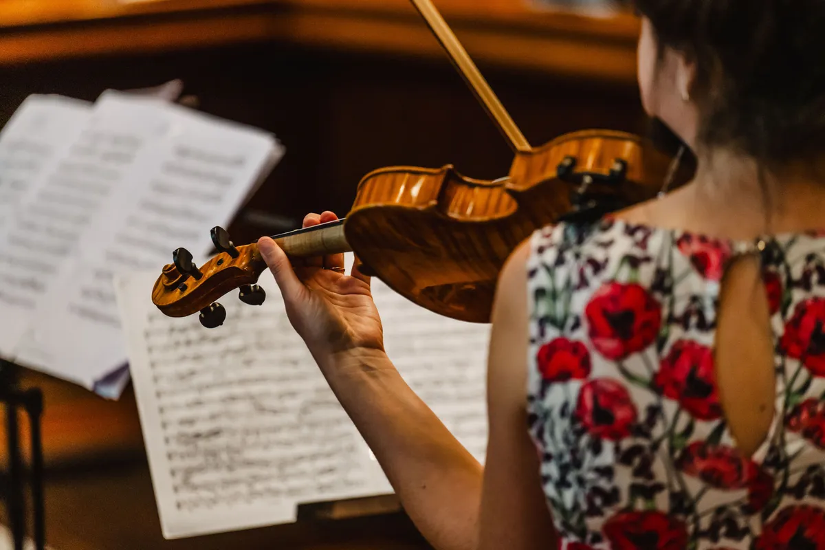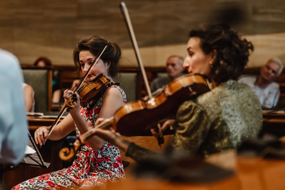 In een verwoede poging de fear of missing out te omzeilen, smeren we hem terug naar de Doezastaat, waar Trio Rusanovsky de elementen probeert te bevechten in het Heilige Geesthofje. De wind slaat steeds harder toe, wat resulteert in bijna wegwaaiende bladmuziek en partytenten. Toch verliest het publiek de kans niet om totaal begeesterd te raken van dit Oekraïens-Nederlandse trio, bestaande uit vader, dochter en zoon. Het impressionistisch klinkende trio dat zij spelen, alledrie op viool, doet aan als iets wat in het bouwjaar van dit modernere hof geschreven had kunnen zijn, namelijk 1926.