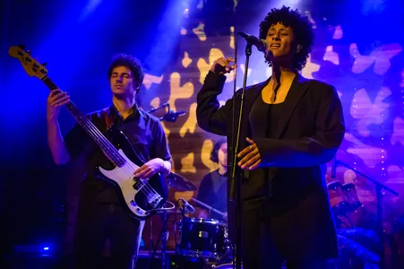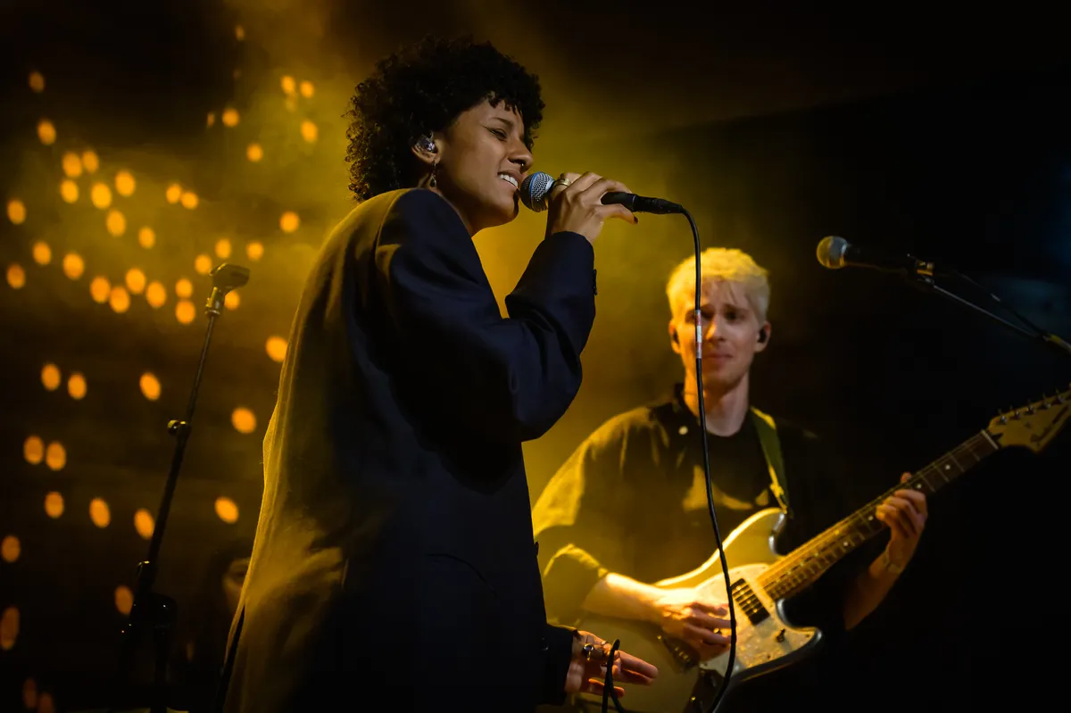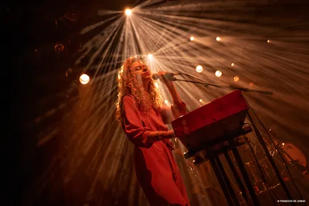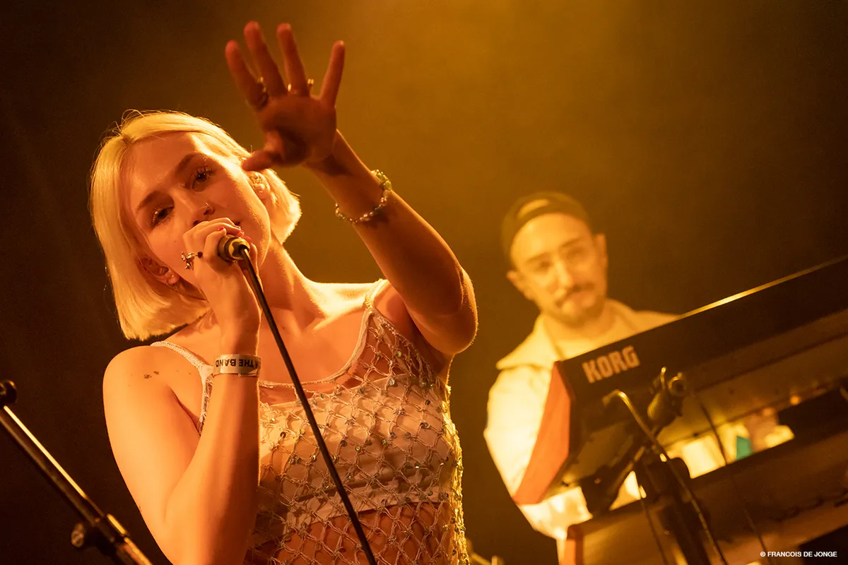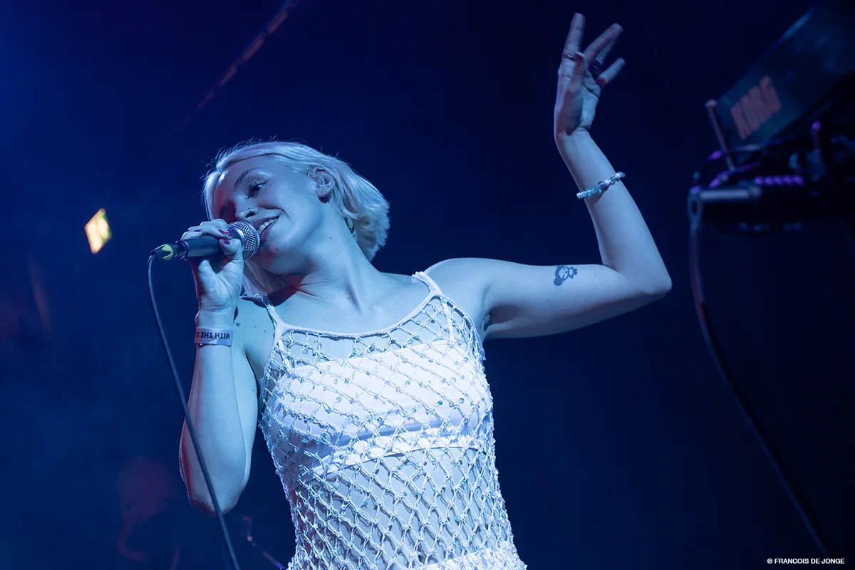 In de Kleine Zaal treedt Ruby Grace aan met een drummer en toetsenist/bassist. Haar tweede, ondersteunende stem komt uit een tablet, haar live zangstem heeft wat weg van Amy Whinehouse. De jonge Hasseltse geeft een prima show, met electropop melodieën en live drums. Qua muziek en zang zeker een vrolijke toevoeging, al had een jonger publiek vanavond wat geschikter geweest. Eentje dat Tik Tok referenties snapt, bijvoorbeeld.