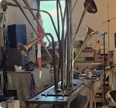 Als afsluiter van het gesprek met beide kunstenaars mag ik de 'partituur' zien. Het is een document dat net zo levendig is als de vrije en experimentele ontstaansgeschiedenis van het muziekstuk: er is in geknipt, geschrapt, bijgebkrabbeld. Losse stukken worden met plakband bij elkaar gehouden. Ik zie vrij weinig traditioneel notenschrift. Als ik informeer naar bepaalde ritmische notities vertelt Trevor dat één daarvan een morse-code is die Anna met haar kleppen tikt: H.A.N.D.