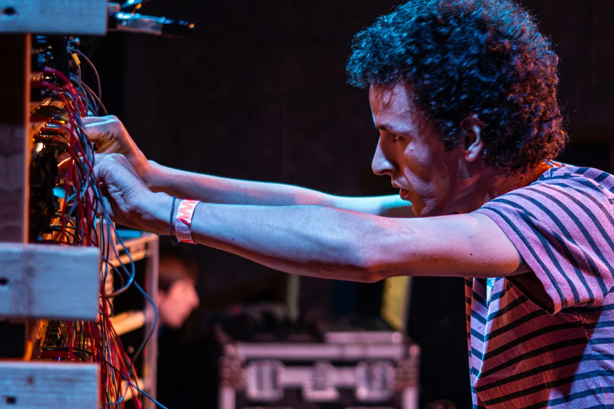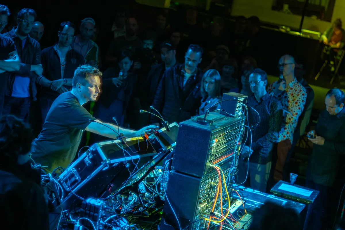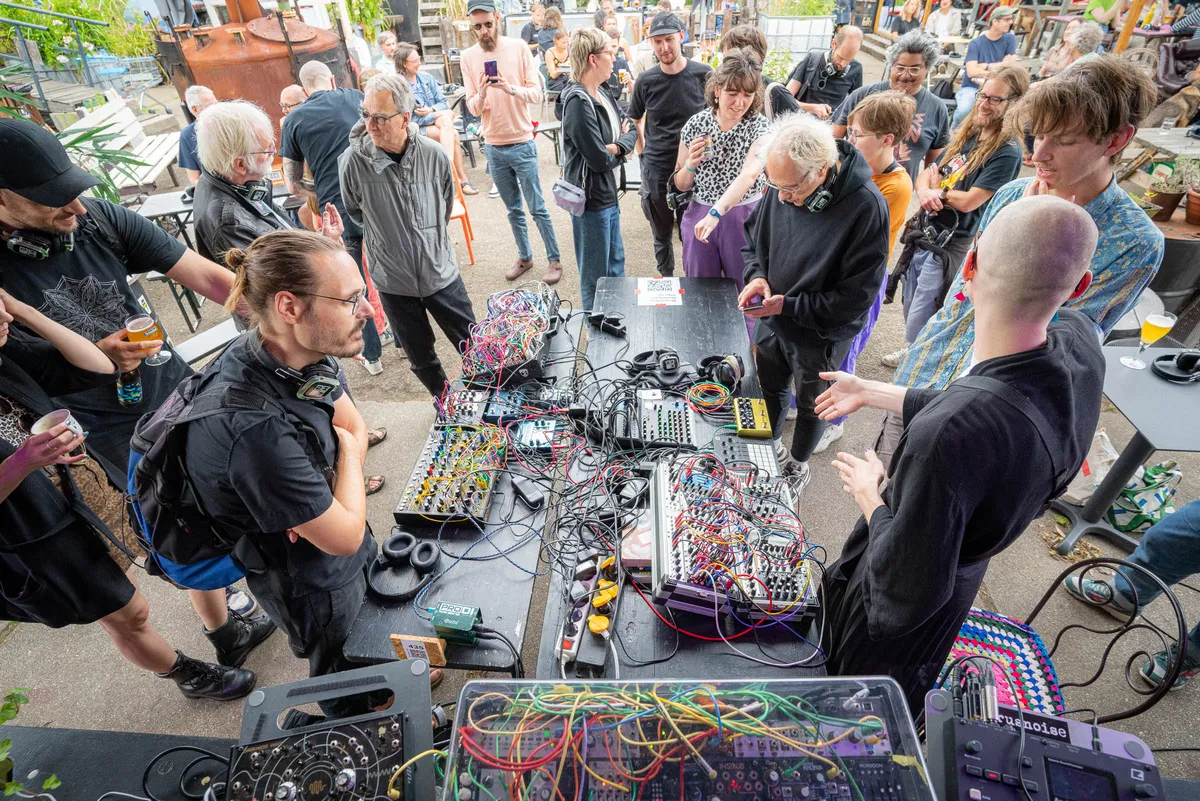Elektronische muziek wordt vaak geassocieerd met duisternis, rook en afstand. Met DJ’s hoog op een podium en publiek als een anonieme massa daaronder. Modulation doet al tien jaar precies het tegenovergestelde. Hier zit je met je neus bovenop de muziek. Je ziet hoe geluid ontstaat, hoe een patch faalt, hoe een idee ineens werkt. Geen zwarte muur van flightcases, maar tafels vol modulaire synthesizers in het midden van de zaal.