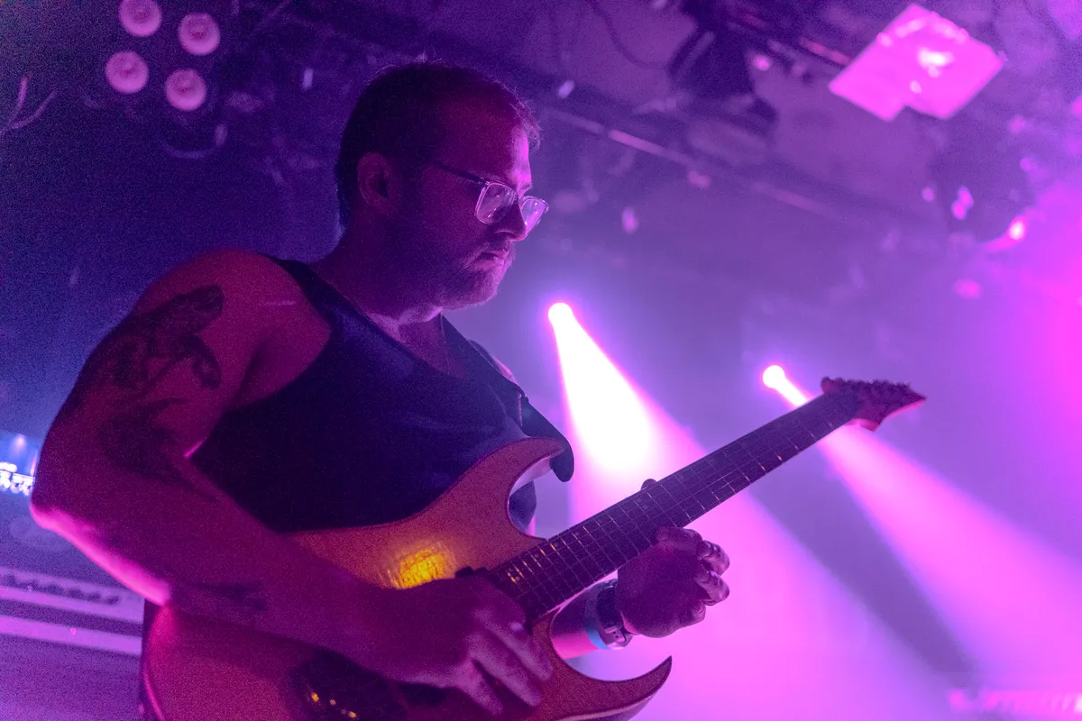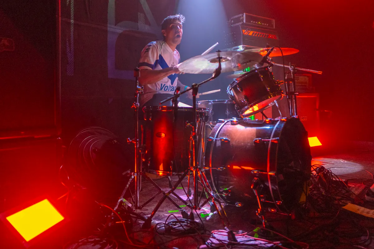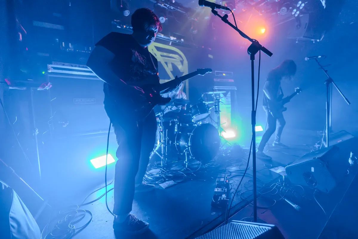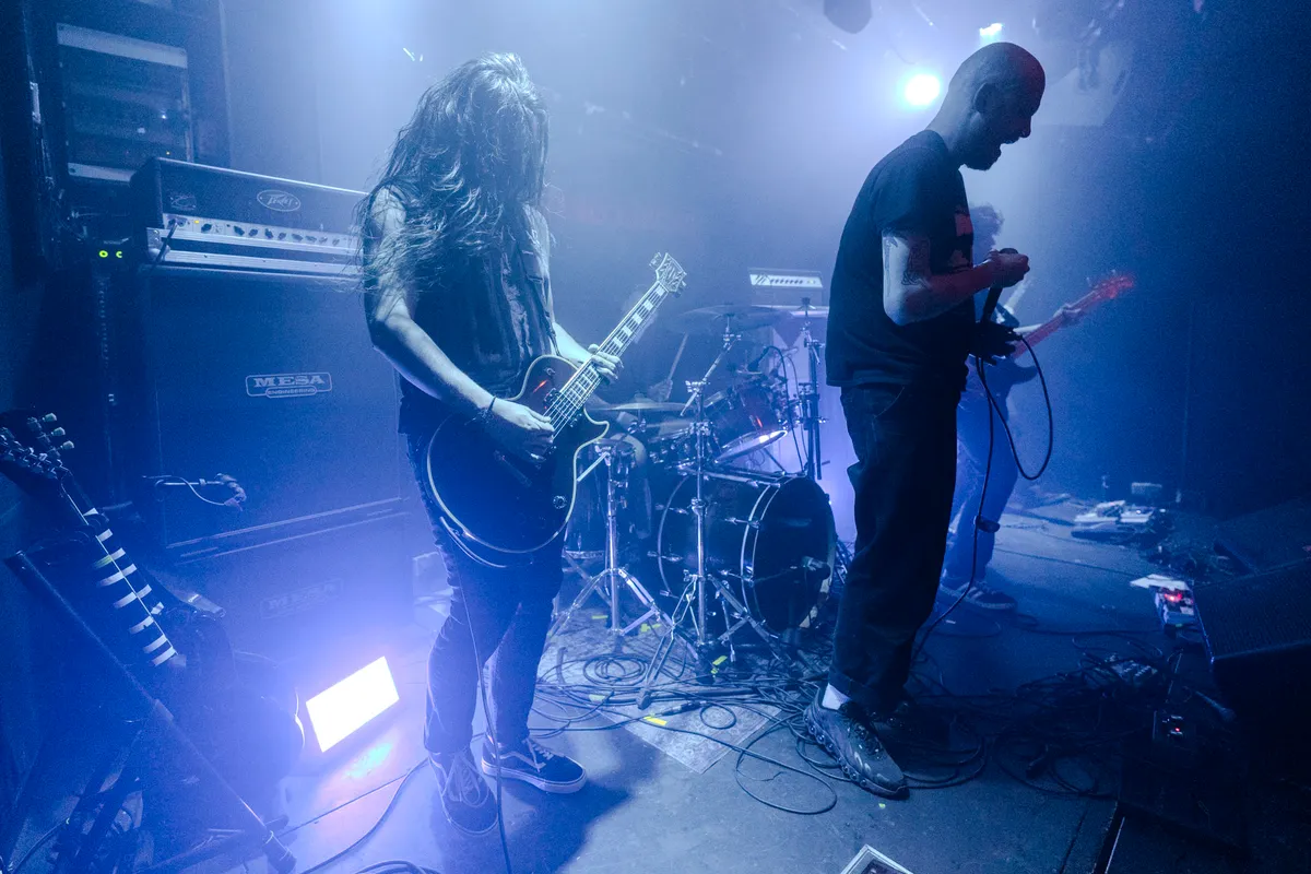 Het is nog niet zo lang geleden dat Ruona Neida zijn eerste show ooit speelde in ACU. Nu zijn ze weer terug met nieuw album Permanent Guilt (het horen absoluut waard, dus ga vliegensvlug naar die Bandcamp-link). Het trio laat vooral een bijzondere dynamiek horen, waar de langzamere stukken de slepende dramatiek van postrock herbergen en er dan weer vliegensvlug wordt omgeschakeld tussen haast grindcore-achtige tempo’s. De lichte shuffle van de drumpartijen en de groove in de bas maken het allemaal wat speelser. Associaties met Raein, Swing Kids en Orchid schieten door het hoofd. Waar de start wat moeizaam is en er druk wordt gecommuniceerd tussen de bandleden onderling, werpt dat zijn vruchten af en gaat het steeds strakker en strakker klinken. De show eindigt met een precisiebom van vrijgelaten emotie, screams, gitaarfeedback en algehele chaos. Een lekker intens begin, dat al gelijk weinig ruimte geeft voor ademruimte of bezinking.