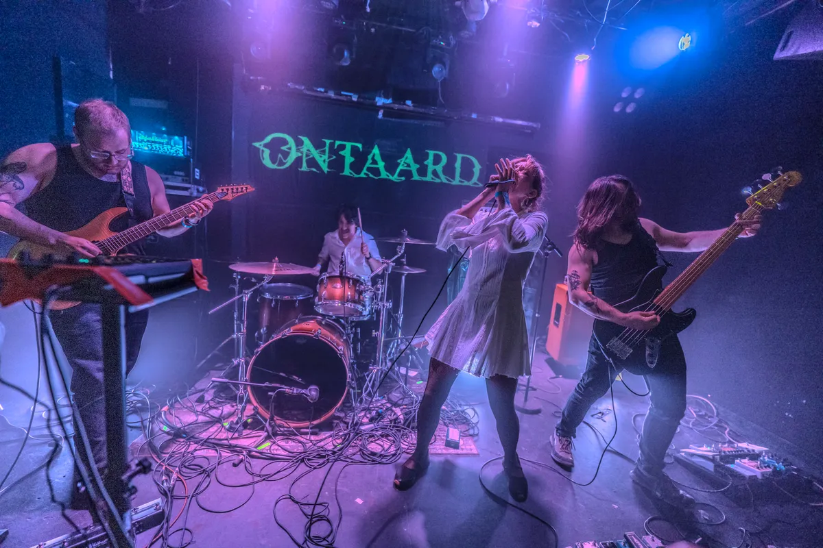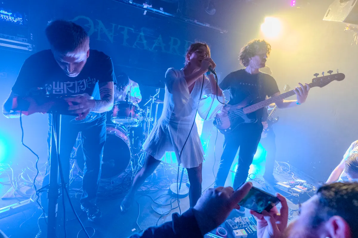 Die rust krijgen we niet, want kort daarna staat Ontaard alweer klaar. Het is menens vanavond en de band klinkt loodzwaar. Het vleugje dromerigheid, wat normaal valt te bespeuren in hun sound, is vanavond naar de achtergrond gegaan. Er wordt gefocust op pijlsnelle blackmetal-injecties en venijnige hardcore, met hier -en -daar zeker ruimte voor een lekkere breakdown. Zoals altijd is daar de stem van Shira van der Wouden wiens spoken word passages nog meer manisch psychotisch voelen als haar toch al ijselijke screams. Vanavond lijken ze er allemaal wel een schepje bovenop te doen: alle emotie en samengebalde energie knalt eruit tot één brok intensiteit. Deze krijgt nog extra gewicht als gitarist Jesse Stey en bassist Jordi van Putten van Throwing Bricks het podium op klimmen en de loodzware metal nog meer geaccentueerd wordt. Flarden harsh noise horen we wel vaker terug bij Ontaard, maar vanavond krijgt juist ook die sectie meer ruimte, waardoor alles piept, dreunt en kraakt: geluidsmuur, speakers, onze oren en de zaal zijn onderdeel van een zuiverende muur van heerlijk lawaai. Een zuivering die nog een staartje krijgt als Yoni van TTFO ook op het podium komt en inzet met industrial gabber, ontaardend (pun intended!) in een groot climaxerend beukfestijn. Het voelt bijna als teveel, maar we ‘moeten’ nog een band.