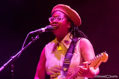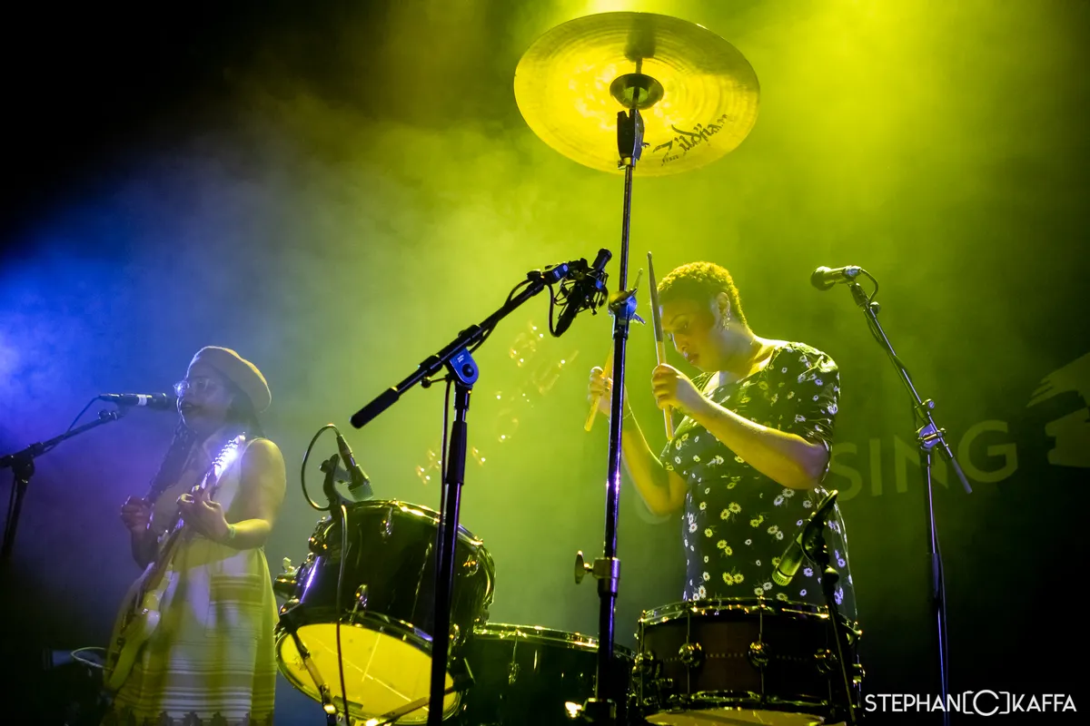 Tijd voor politiek. Wie de bio van Big Joanie leest, vindt namen als Thurston Moore en Jack White die de band vooruithielpen. Tijdens het optreden in Heartbeat Hotel noemt de “black feminist punkband” uit Londen dat ze op een playlist van IDLES, met wie ze volgend jaar gaan touren, staan. Niet de minsten dus. Muzikaal rammelt het aan alle kanten. Een metronoom zou halverwege het eerste nummer wanhopig het bijltje erbij neergooien en je vraagt je soms af of de dames elkaar kunnen horen. Maar ja, ook dat is punk, en sommige nummers zijn best catchy. Belangrijker is de boodschap, en die heeft het trio bij zich. Zo wordt een weinig subtiele sneer uitgedeeld aan een zeker festival dat zich richt op muziek uit Londen (zonder het bij naam te noemen) omdat daar vooral bands bestaande uit witte mannen en een enkele witte vrouw op het podium stonden. ‘Dat is niet wat Londen is, Londen is multicultureel.’ Het overwegend witte publiek slikt het als zoete koek.