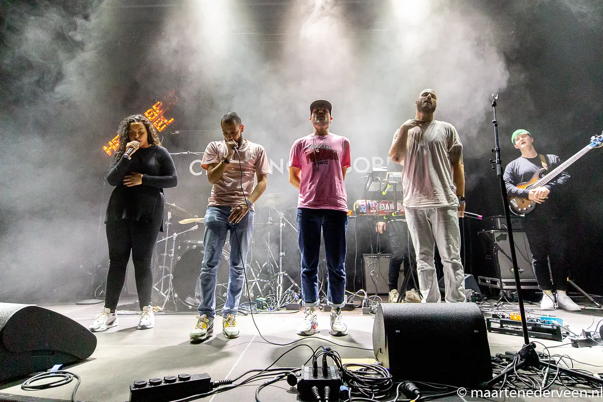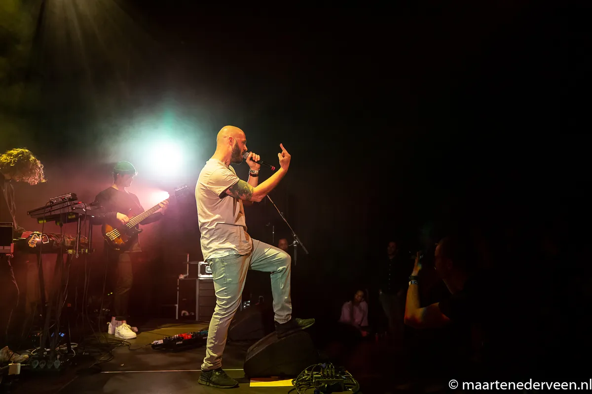 Sprekender is Manu van Kersbergen, die gemakkelijk zonder backing band of backing track een publiek kan entertainen. Als woordkunstenaar en spoken word artiest is hij een schrijver in het wild. Nooit op papier, wel op muziek. Vanavond omlijst door de kneiterstrakke en jazzy backing band Multibeat. We horen nieuw materiaal, net als vorig jaar online, maar offline komt het ongetwijfeld beter over. De tracks komen voort uit de ervaring als postmoderne papa en maatschappijkritische rapper. De goed verstaanbare performance dwarrelt tussen manie en pracht in. Bij een track over hebzucht zit er zowaar een freudiaanse analyse verstopt doordat klank, tekst en muzikale invulling ons doet realiseren dat het in ons allemaal zit. De rapper lijkt bijna in schizofrenie te vervallen. Als kers op de taart heeft Manu collega’s in woord meegenomen. Stryder, Suehaylee en Guus van der Steen, die op hun beurt thema’s als trots, luiheid en doorgeslagen goeddoeners analyseren.