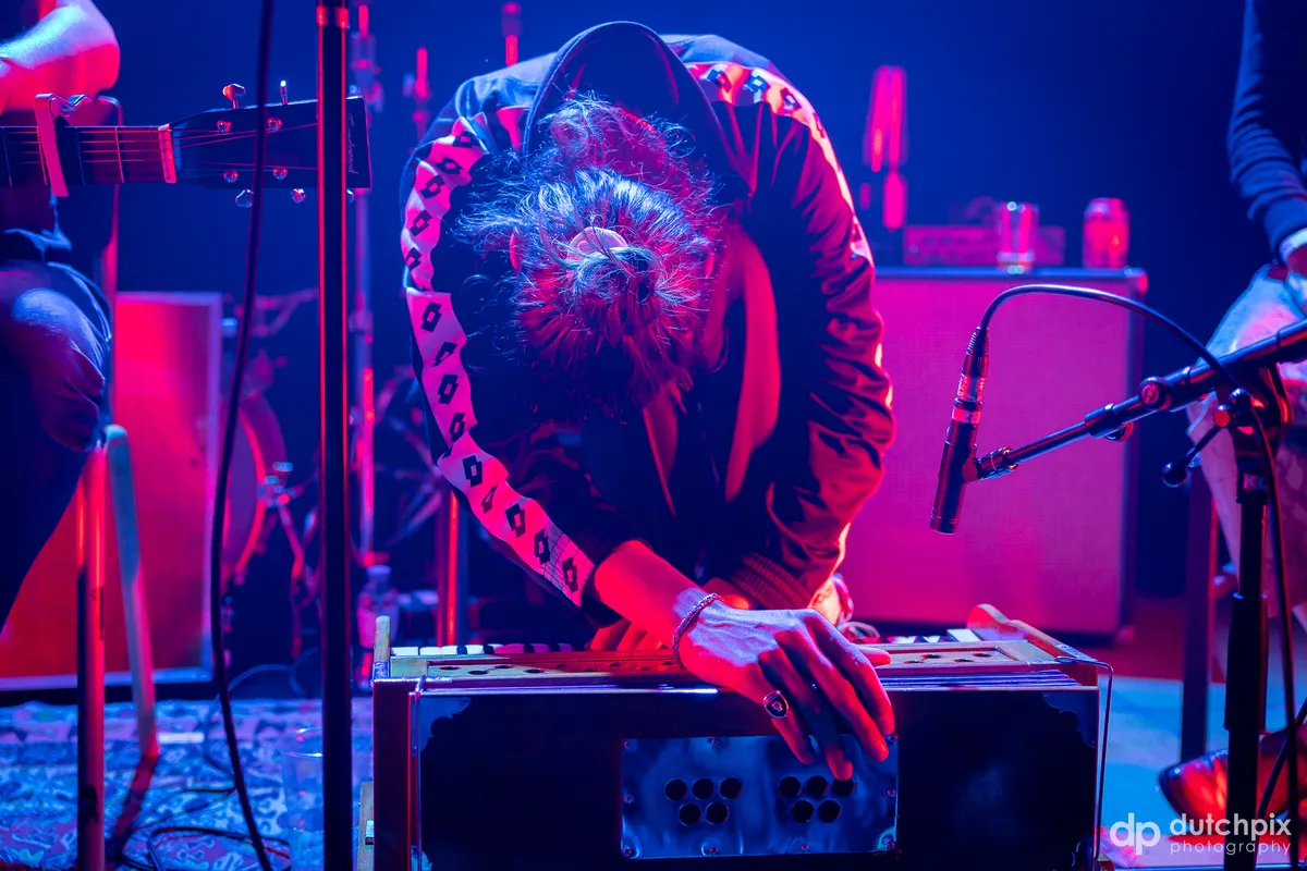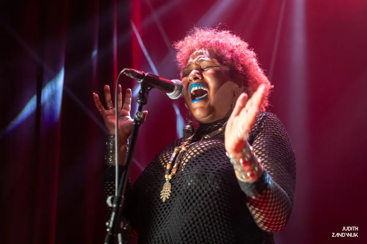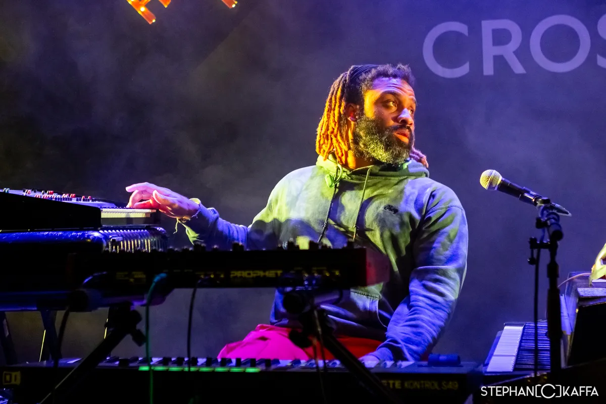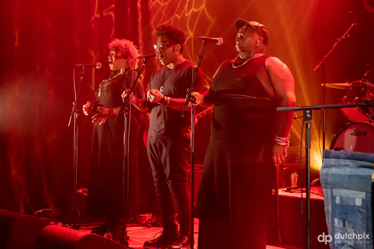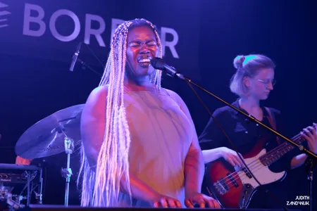 De afsluiter van zaterdag is een heuse vibecheck van Lonnie Holley en Mourning {A} BLKstar. Klinkt als muziek als religie. Na een stralende eerste track geeft Lonnie toe dit helemaal niet geoefend te hebben. “We're perfect enough, this band ain't playing”. En dat zet de toon. En net als religie hebben we te maken met opbeurende leuzen zoals “Don't fail yourself”. Dan voorspellend, “there's a cloud a coming”. En uiteraard wat vaagheid, Lonnie spreekt van “us”, want “united spirits, I want to unite the spirits”. We snappen het niet helemaal, maar waarderen de overtuiging. Vooruit, vandaag zijn we allemaal tezamen. Al is dat maar om de loei en loeistrakke band. En ja, wij geloven in Lonnie en in BLKstar. Een grandioze afsluiter. Minder is het tempo, dat blijft hangen op gemiddeld. Los van het knallende slotstuk, waardoor de show met anderhalf uur veel te lang duurt. Vooral voor een ongeoefende eenmalige sessie tussen briljante muzikanten. Langzaamaan druipen bezoekers af. Niet omdat het tegenvalt, maar omdat het al laat is. Het Crossing Border publiek is graag weer uitgerust op de zondag. En zo brandt Crossing Border met de afsluiter als een nachtkaars langzaam uit.