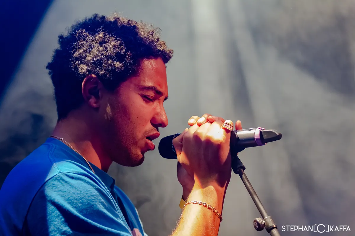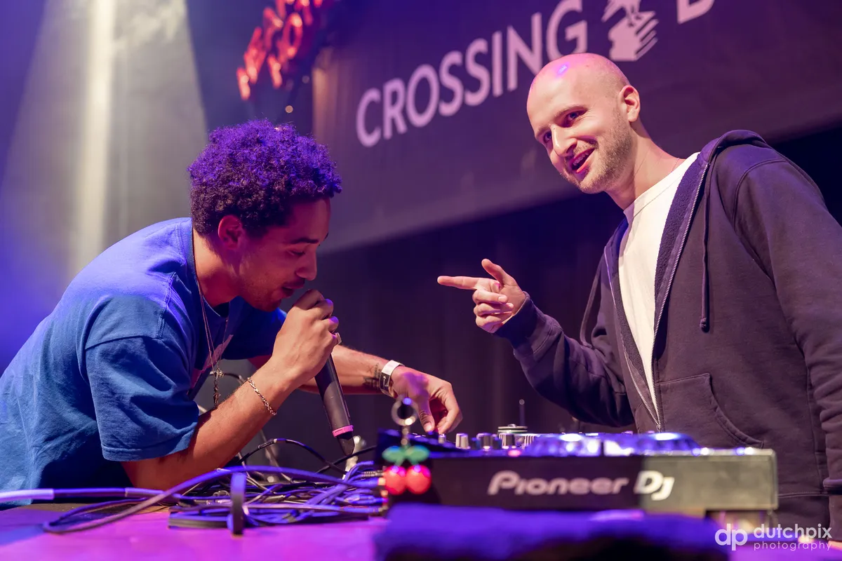 Niet helemaal weten hoe de setlist gaat en er alsnog zonder problemen doorheen gaan, dat vergt focus. Zo rapt Jeshi vol overtuiging over alles dat hem dwars zit, van de kleine dingen die in sequentie misgaan -- “sick of all the things running through my mind” -- tot aan de torenhoge messenmisdaden in London. Gelukkig wisselt de Londenaar het af met luchtige songs, zoals “Another Cigarette” en nu al publieksfavoriet “Proteine”. En de rapper verkeert in goed gezelschap, met ondersteuning van flitsende en sterk afwisselende beats. Vanavond valt de show op door de aangename houding. Hij frutselt wat met de micstand, checkt met het publiek of hij Den Haag wel correct uitspreekt is en proost met alle bierdrinkers. Wanneer Jeshi het mengpaneel dichtdraait en a capella doorgaat weten we het zeker. Dit is een hoogtepunt.