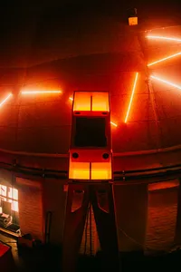 Naast het superieure geluid (daar zijn we weer), dat je tot in je tenen voelt, valt ook de ruimte het beste te omschrijven als ronduit krankzinnig. Met de nadruk op rond. De koepelvorm prijkt gevoelsmatig tot in de hemel, wat de beleving van de lichteffecten direct intensiveert. Aan het gewelf de taak haar licht op de massa te laten schijnen door middel van laserprojecties en LED-strips, vervaardigd en aangestuurd door Luca Tornato.