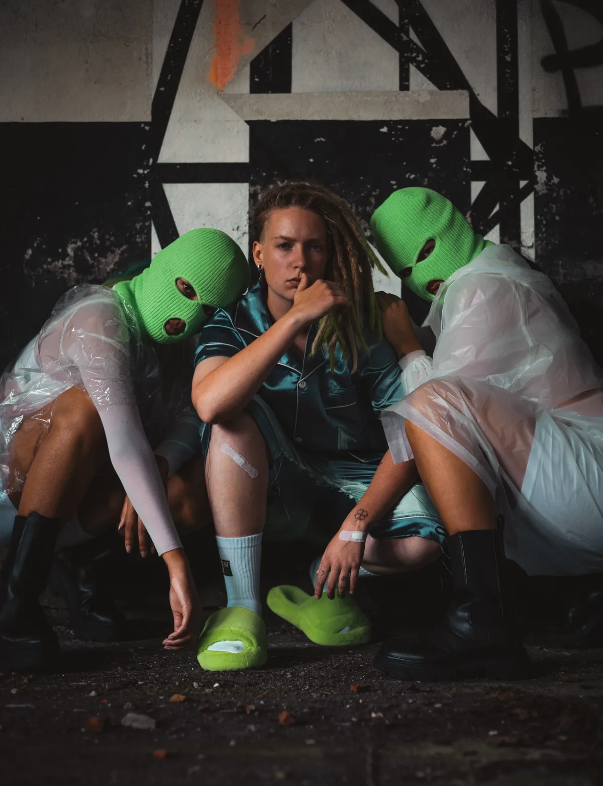 “Ik word natuurlijk wel door mensen geïnspireerd, maar dat is heel breed. Veel mensen vergelijken me qua stijl met Billie Eilish, omdat zij ook veel oversized kleding draagt. Maar voordat Billie Eilish beroemd werd, droeg ik ook al oversized kleding. Dus ik ben niet per se door haar geïnspireerd. Ik houd sowieso heel erg van fashion. Vroeger had ik altijd van die TopModel schriften waar ik diehard outfits in tekende. Er komt nog een dag, mocht Nike dit lezen, dat ik een collab ga doen met Nike. Ik wil heel graag een sneaker ontwerpen voor Nike, ik zweer het. Ik wil ook graag een kledingmerk beginnen, dat idee ligt al jaren op de plank. Ik wil graag dat mijn naam eerst nog wat groter wordt, maar hier en daar promoot ik het al een beetje. Ik laat daarin ook het spirituele wel doorschemeren. Maar goed, qua inspiratie… Er zijn niet per se mensen die mij inspireren. Ik was eigenlijk altijd die chick die iedereen kapot raar vond, omdat ik rare kleren droeg. Maar die kleren waren dan na een maand helemaal in en dan droeg iedereen het. Ik vind het gewoon belangrijk om daarmee te spelen. Ik heb bijvoorbeeld iets van zestig paar sokken. En dan denken mensen: “Wat moet je met zoveel sokken?” Maar geloof me, dat is de kers op de taart.”