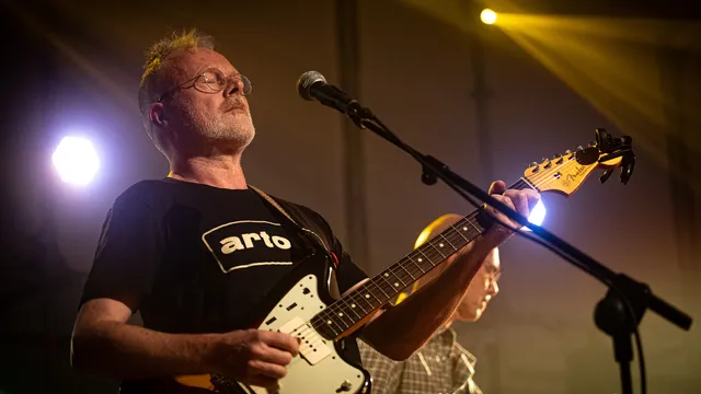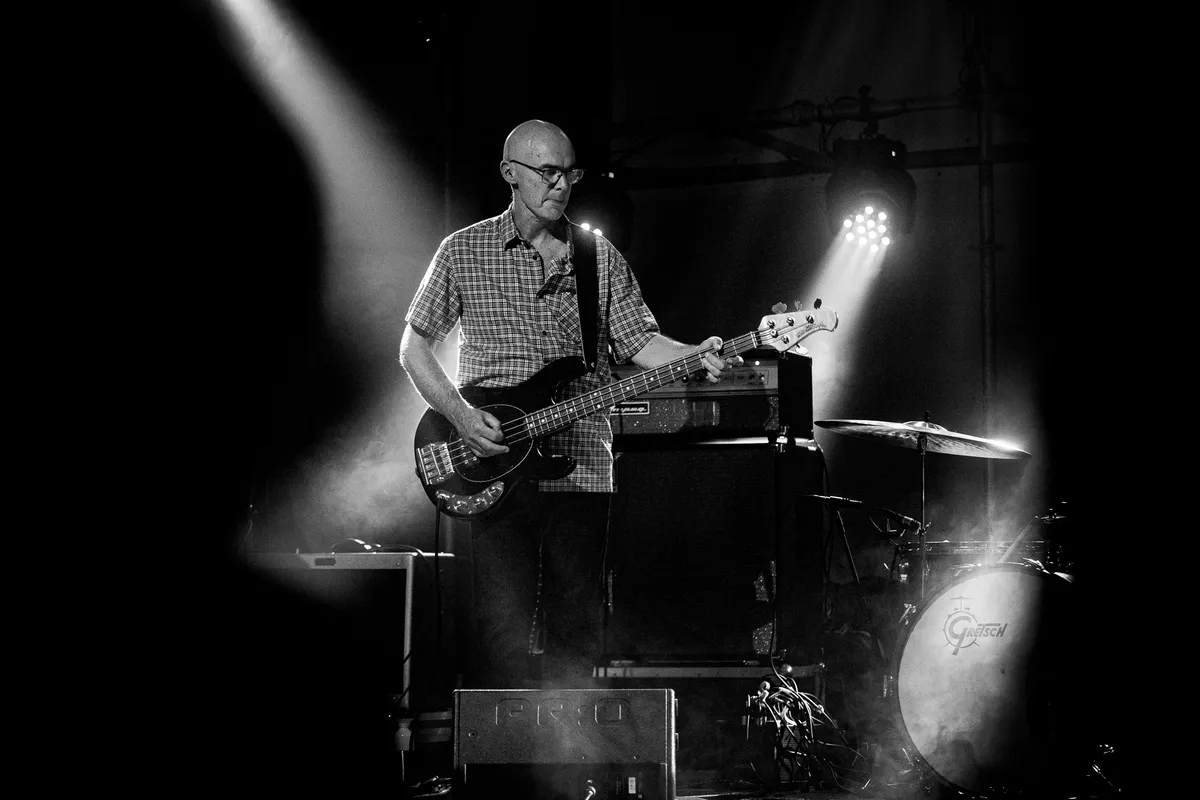 De mannen genieten zichtbaar om weer op het podium te staan. Af en toe kijken ze elkaar aan met een lach en ze lijken allemaal erg in hun element te zitten. Dat is fijn om te zien. Hun muziek vloeit soepel de luidsprekers uit en het klinkt smooth, alsof ze heerlijk ontspannen zitten te jammen met elkaar. Wellicht doen ze dat hier en daar ook een beetje. Het klinkt erg ontspannen en gemoedelijk. De toetsenist voelt zich helemaal op zijn gemak en geniet tussendoor van zijn appeltje. Elk nummer is weer wat steviger dan het vorige, maar toch blijft het vrij bescheiden. De lichten en rookmachine geven een fijn effect aan het optreden.