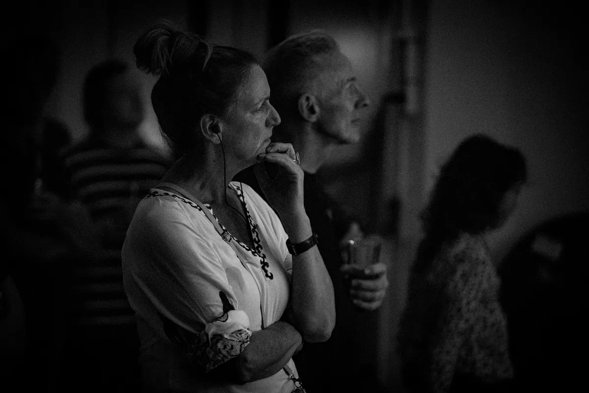 Het geluid is puik afgesteld; de driestemmige zangmelodieën komen prachtig naar voren en elk instrument is duidelijk hoorbaar. Samen vormt het een harmonieus geheel. Het totale volume is iets te hard naar mijn smaak, maar dat wordt ook versterkt door de hoeveelheid treble in de gitaar. Het drumstel is niet overheersend en dat maakt dat deze prettig in het gehoor valt. Het derde nummer is wat meer up-tempo en aarzelend komt het publiek een beetje los; mensen swingen voorzichtig mee op de muziek. Het nummer dat daarop volgt is wat meer ingetogen en klinkt enigszins ruimtelijk.