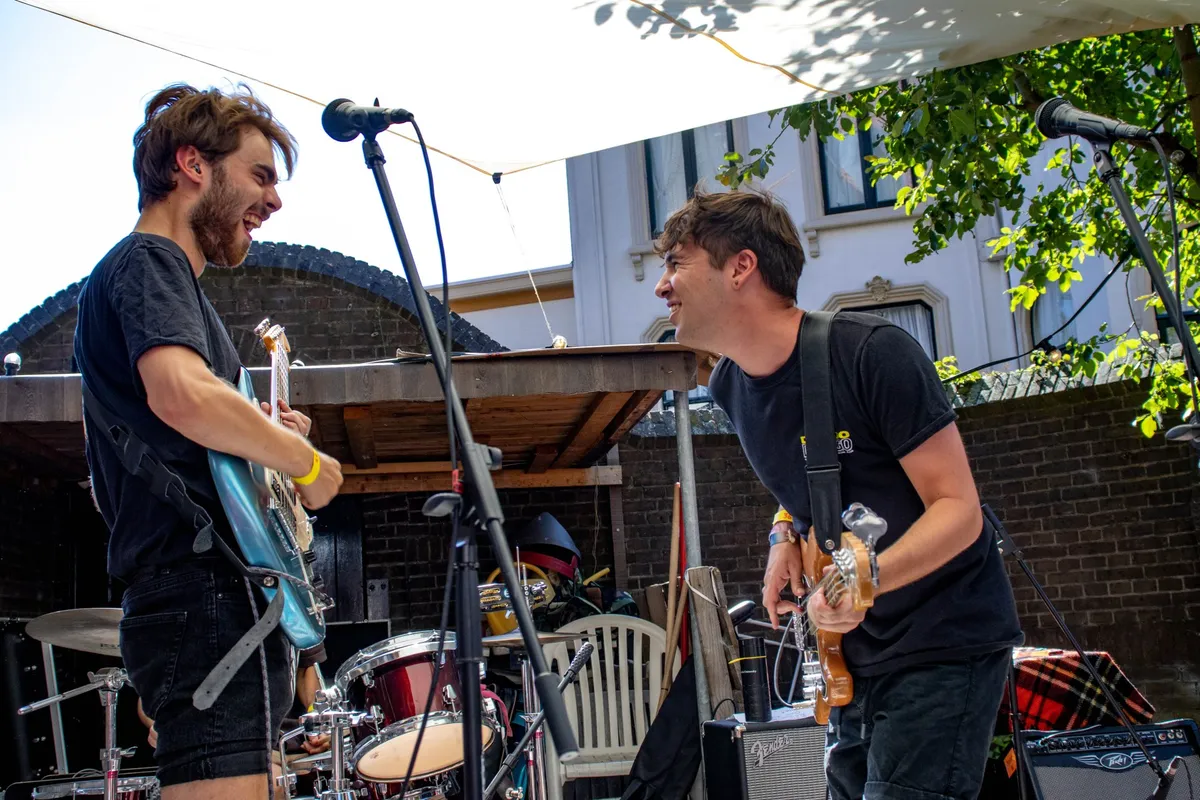 “Ik ben kort geleden begonnen voor 3voor12 Utrecht en heb daarom een plaatje gekozen dat mij enthousiast heeft gemaakt om het fotografieteam te versterken. Deze foto heb ik gemaakt op een jaarlijks terugkomend tuinfestival georganiseerd door een groot studentenhuis in Utrecht. De band op de foto, Picknick Banter, sprong daar van het kleine geimproviseerde podium af met enthousiasme en samenspel. Toen ik vooraan het podium stond voelde ik dat ik het goed voor elkaar had om daar met mijn camera te staan. Dynamiek, improvisatie en energie straalt dit uit en dat is wat ik graag vastleg.”