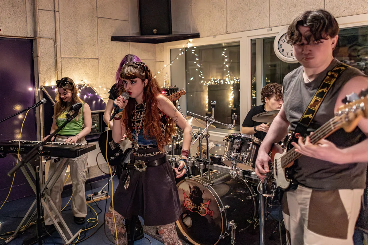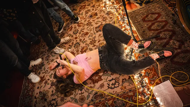 Een groot contrast met Kajal is het opeenvolgende optreden van Røyking in ruimte 4. De punkband trekt een publiek van jonge punkers aan. Bij binnenkomst word je overdonderd door energie en schreeuwgeluiden. De zangeres is niet verlegen en zorgt voor een energieke publieksinteractie. Ze vordert nieuwsgierige mensen op de gang naar binnen te komen: “Er is meer dan genoeg plek.” Røyking heeft meerdere nummers met het thema imago, zoals het nummer ‘Gewoon gemiddeld'. De band springt er tijdens de performance op los en krijgt het publiek ook aardig in beweging. Van een biertje zijn ze niet vies. De zangeres tikt de biertjes achterover tijdens de ballad ‘Zuipen tot we kruipen’, waarbij zangeres Emma de Boer ‘zuipend’ over de grond kruipt. Het is natuurlijk geen punk zonder rauwe teksten. Røyking heeft het over tepels likken, spullen in de gracht gooien en GHB in je drankje.