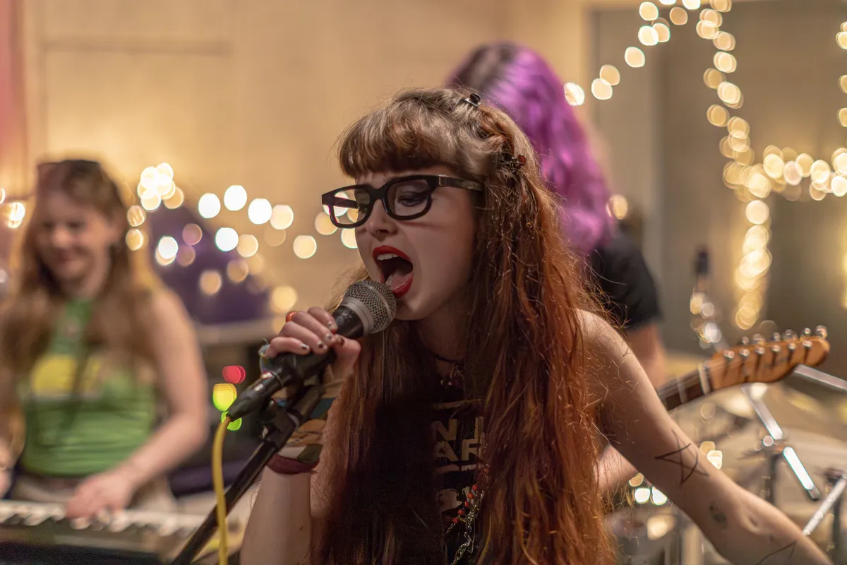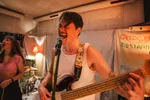 De weg naar de Alt Attic, niet geheel verrassend helemaal bovenin Popradar, is duidelijk aangegeven. ‘BIJNA DAAR!’, staat op een bordje, een hoek later gevolgd door ‘NU ECHT BIJNA!’. Het vinden van de ruimte waar Coral Springs speelt, is dan ook een peuleschil. De Haags/Leidse band speelt poppunk, wat betekent snel, melodieus en lekker om mee te schreeuwen. Daar hoef je de nummers niet eens voor te kennen, zegt zangeres Jo als ze ‘Tonight’ aankondigt. Als de band op vol volume speelt, valt haar stem helaas wat weg, maar gelukkig weet ze er zo nu en dan toch doorheen te komen. De band speelt strak, ondanks dat een van de gitaristen om onverklaarbare redenen een trui aan heeft. Het zal namelijk niet makkelijk zijn om te spelen in zo’n warme ruimte. Hoewel, het lijkt hem niet te belemmeren.