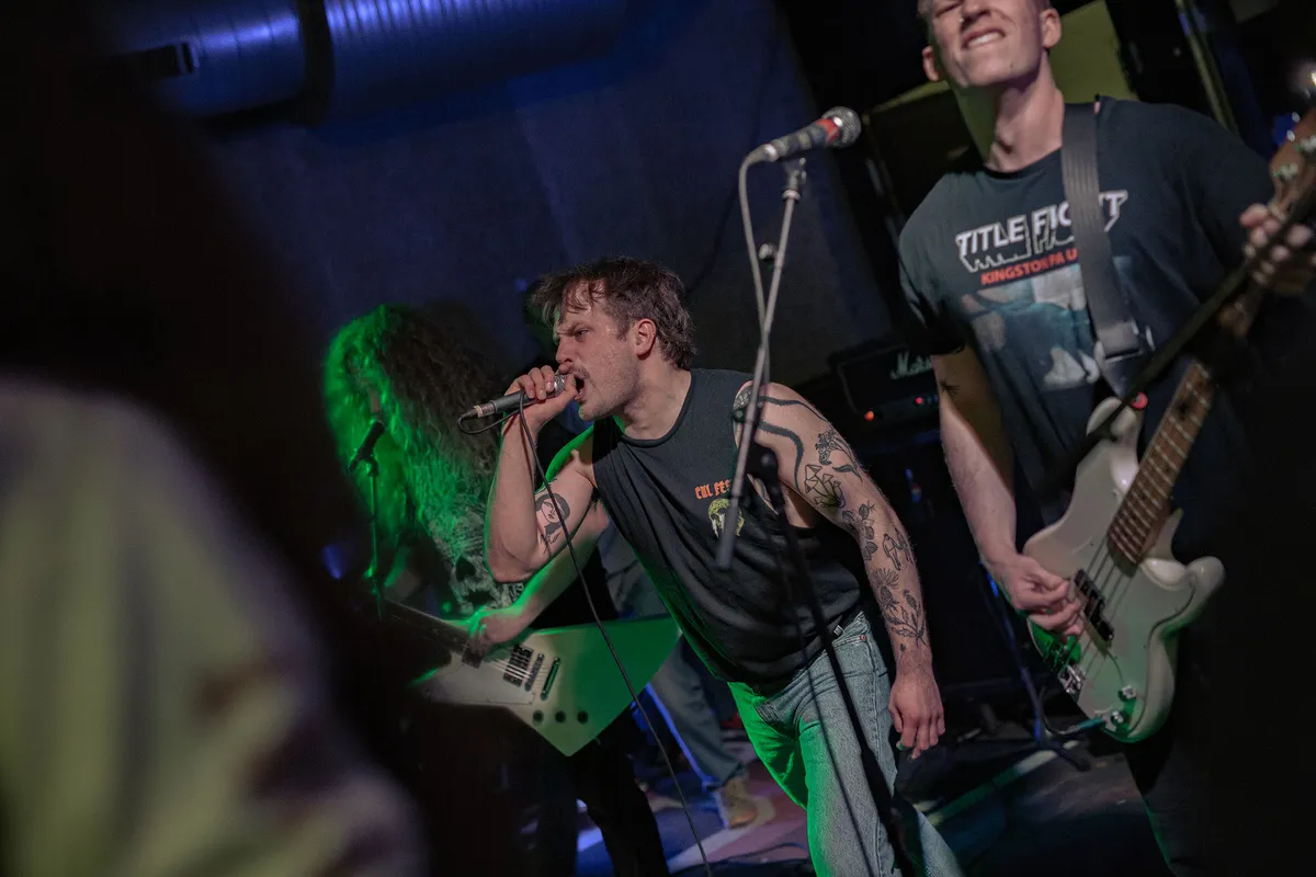 dB’s is al sinds jaar en dag een broedplek voor de lokale scene. Het slotfeest wordt meer dan representatief afgetrapt. Het eerste optreden is van State Power, een nieuwe politiek beladen hardcoreband met leden van Bony Macaroni en Two And A Half Girl. Het eerste nummer van de band maakt al direct duidelijk: dit is onversneden, echt harde hardcore. Woest, activistisch, uitgesproken. Bij een optreden als dit kunnen moordende breakdowns en een rondspringend publiek niet lang uitblijven. Het is nog het begin van de avond, het publiek stroomt nog toe, maar State Power weet de aanwezigen al gelijk te grijpen. Ook Paul de Brabander loopt met een brede grijns, instemmend knikkend door het publiek; een veel gezien beeld deze avond.