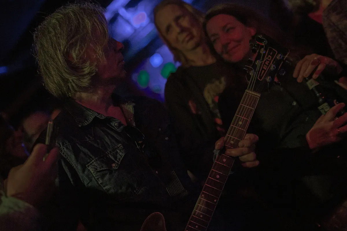 Het is een optreden waar het onderliggende ethos van dB’s steeds duidelijker bloot komt te liggen. Want hoe zo’n band die al zo lang meegaat en haar wortels in de ruimtes van dit gebouw heeft, op het podium staat, zegt ook wat over deze plek. Terwijl de band speelt, staan mensen op het (gelijkvloerse) podium te dansen, worden gitaren, drumstokken en microfoons doorgegeven, wordt er binnen gerookt, en beginnen de grenzen tussen band, podium en publiek steeds vager te worden. Zoals bij ieder optreden deze avond is van meet af aan duidelijk: het gaat hier om speelplezier, niet om wat wel of niet hoort. Doen wat je zelf wil en je eigen weg gaan.